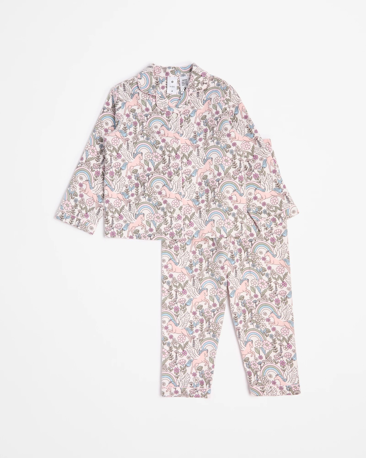 Immerse yourself in pure comfort with our Unicorn Cotton Flannelette Pyjama Set. Made from soft cotton, this cosy nightwear ensures a restful night's sleep. The 2-piece set features a delightful floral unicorn print, bringing a touch of magic to bedtime. The top offers a classic collared, button-up front with long sleeves, while the matching bottoms include an elastic waistband for a perfect fit. Enjoy the whimsical design and look forward to sweet dreams every night. Treat yourself or someone special to this enchanting pyjama set today.