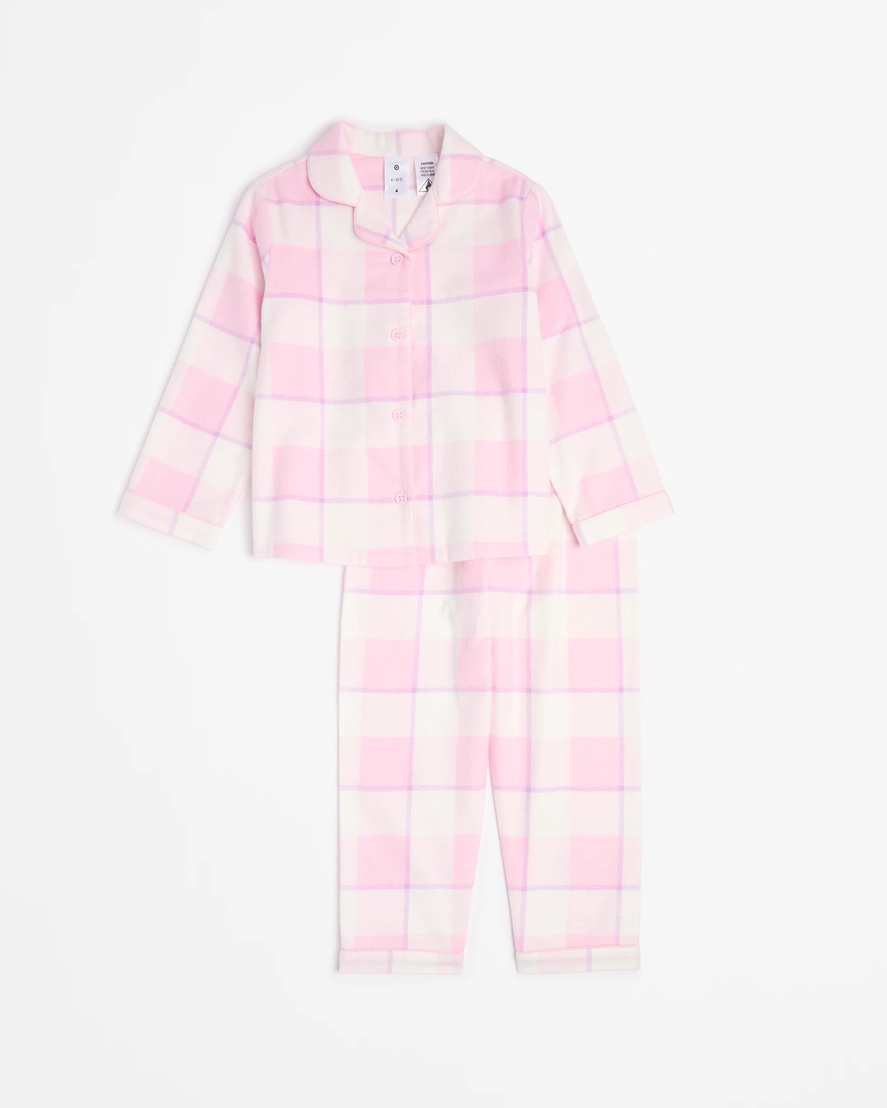 Little Girls Cotton Flannelette Pyjama Set - Pink Check