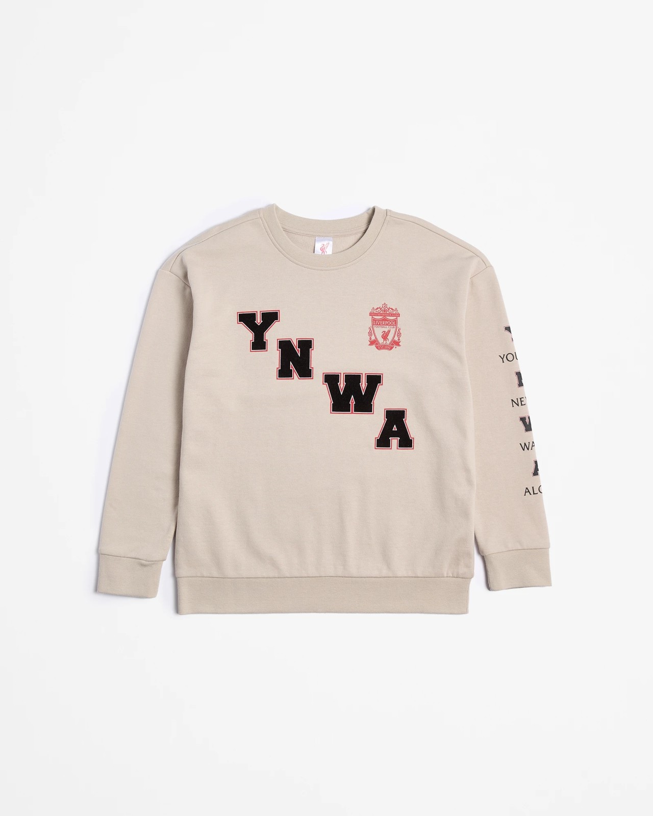 Show your passion for Liverpool FC with this stylish jumper. Made from a comfortable cotton-poly blend, it offers a regular fit and features a ribbed crew neck. The light tan shade and long sleeves with ribbed cuffs add a touch of classic charm, while the Liverpool FC microfibre print on the front lets you proudly display your team allegiance. With a straight ribbed hem and a cosy fleece lining, this jumper is perfect for keeping warm during those cooler match days. Join the ranks of dedicated fans and add this essential piece to your wardrobe today.