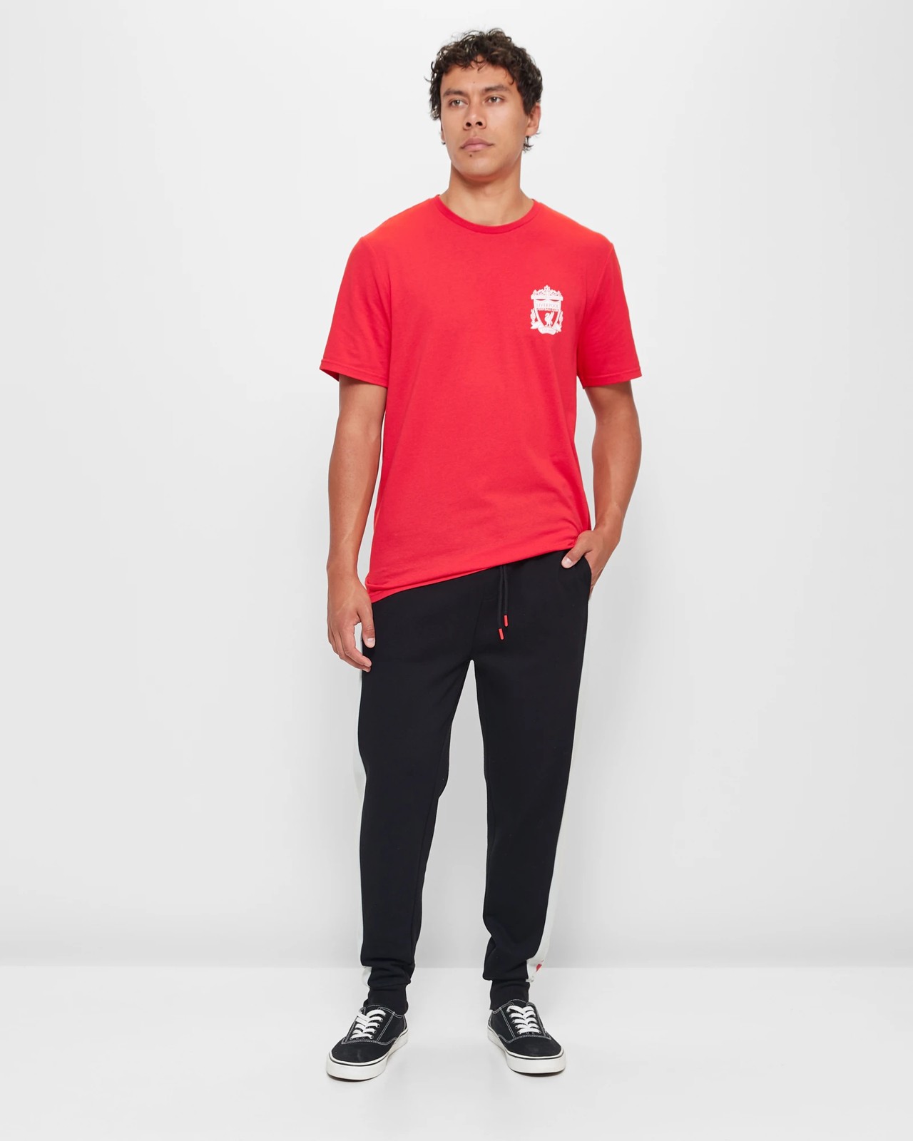 Discover comfort and style with our Liverpool Trackpants! Perfect for any fan, these trackpants offer a regular fit and are made from a cosy blend of cotton and polyester for maximum comfort. The sleek black design with a white side panel adds a modern twist, complemented by the iconic Liverpool FC logo. Whether you're relaxing at home or out with friends, the elastic waistband with drawstrings ensures a perfect fit every time, while the multiple pockets offer storage. Embrace the pride with these officially licenced trackpants. Grab yours today and wear your team spirit with pride!