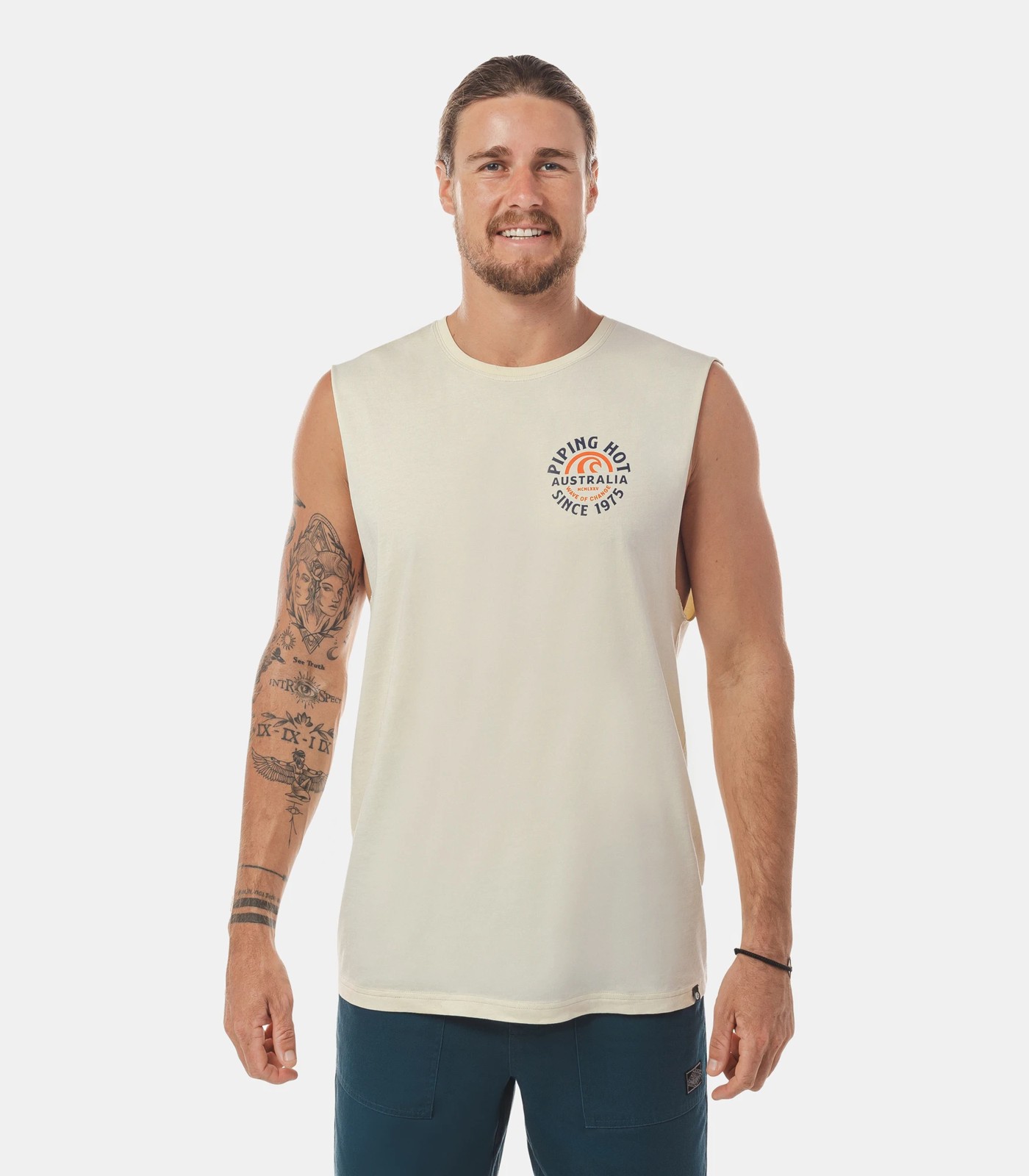 This Piping Hot muscle tank is in an on-trend ecru colour, with a graphic print on the chest and back. It's made from soft, breathable cotton for comfort throughout the seasons.