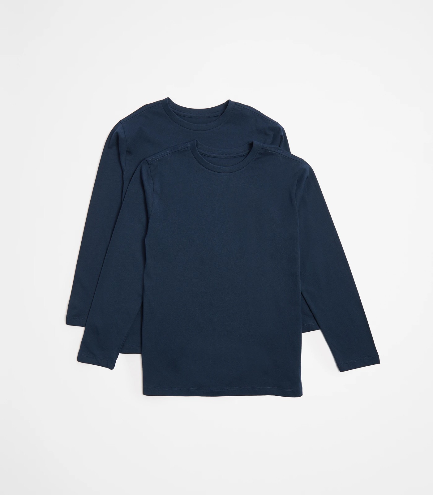 Enhance your little boy's wardrobe with these stylish Long Sleeve 2 Pack Tops. Made from high-quality, cotton-rich fabric, these tops are not only comfortable but also durable. The regular fit and ribbed crew neck provide a perfect fit and easy dressing. With long sleeves, these tops are ideal for layering on cooler days. The straight hem adds a smart touch to any outfit. Available in a variety of basic colours, these tops are versatile and can be easily paired with any bottoms. Upgrade your little one's style with these must-have tops.