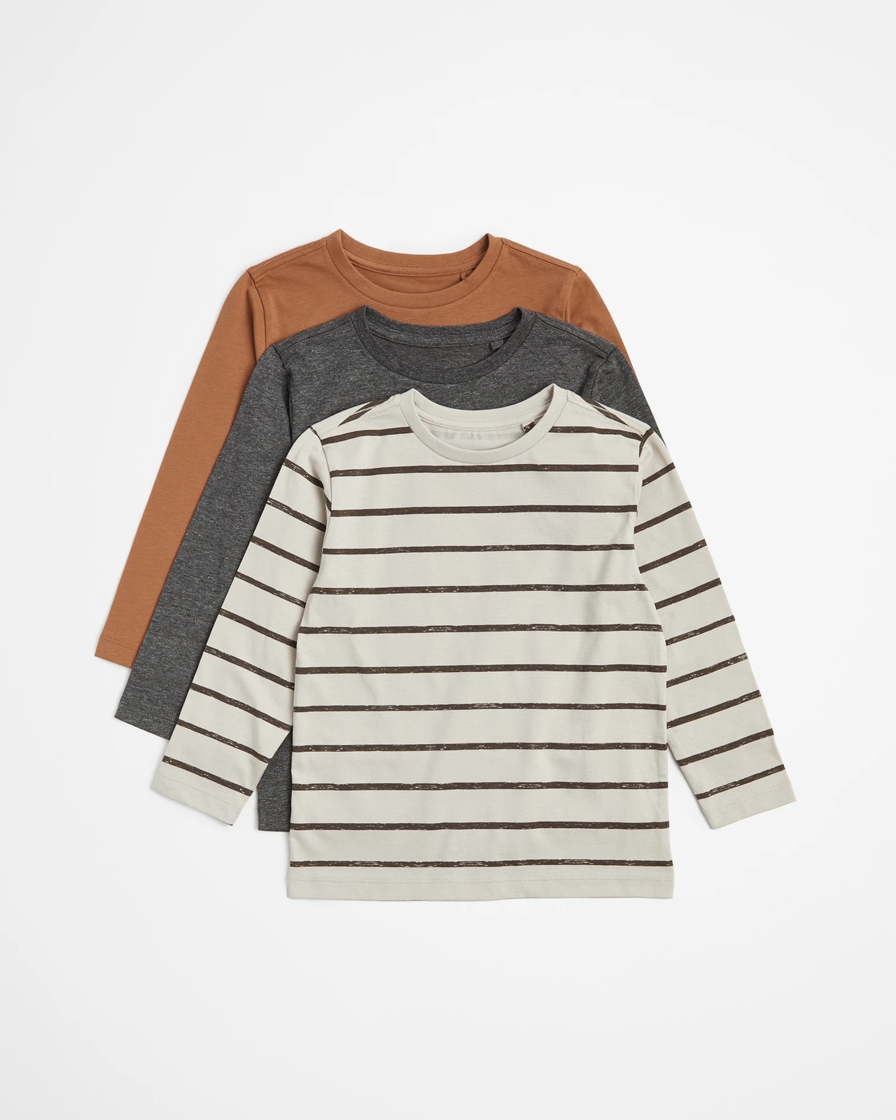 Introducing our Long Sleeve 3 Pack Tops for boys. Made from soft and comfortable cotton, these tops come in a regular fit that ensures maximum comfort for your little one. The ribbed crew neck and long sleeves provide extra warmth during chilly days. With a variety of colours and prints to choose from, your child will always look stylish and trendy. These tops feature a straight hem and are perfect for casual wear or as layering pieces. Upgrade your child's wardrobe with these versatile and high-quality tops. Shop now and give your little one the perfect addition to their everyday outfits.