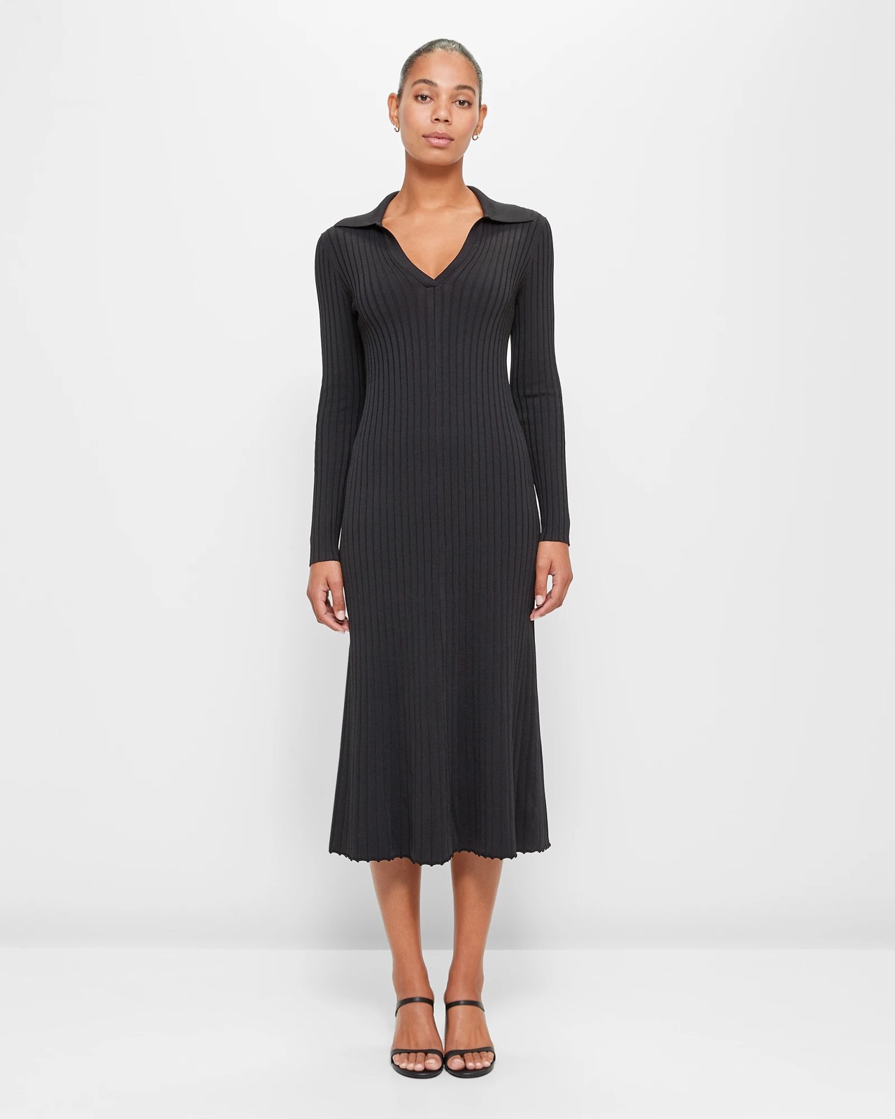 Experience timeless elegance with our ribbed polo dress. Crafted from a luxurious viscose/nylon blend, the dress exudes sophistication and comfort. The slim fit and A-line cut flatter the silhouette, while the round collared neckline with v-front drop adds a touch of modern chic. Perfect for both formal occasions and casual gatherings, the dress promises to elevate your style effortlessly. Embrace the charm of long sleeves and a straight hemline, creating a versatile and graceful ensemble. Elevate your wardrobe with our long sleeve ribbed polo dress – a must-have for every modern fashionista.