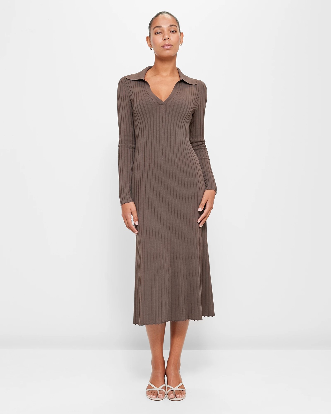 Long Sleeve Collared Rib Polo Dress - Preview