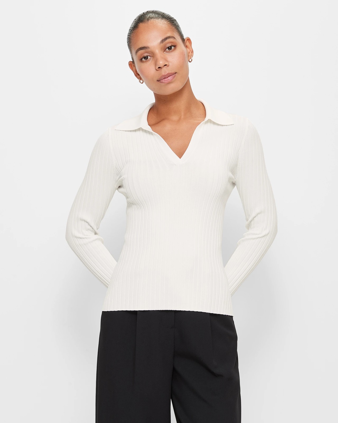 Indulge in the luxurious comfort of our exclusive long sleeve polo neck top. Crafted from a premium viscose and nylon blend, the all-over ribbed crepe design ensures a flattering and slim fit. The round collared neckline with a v-front drop exudes elegance, while the straight hemline adds a touch of sophistication. With its classic yet trendy style, you'll be ready to make a fashion statement wherever you are. Elevate your wardrobe with our exclusive textured polo neck top today!