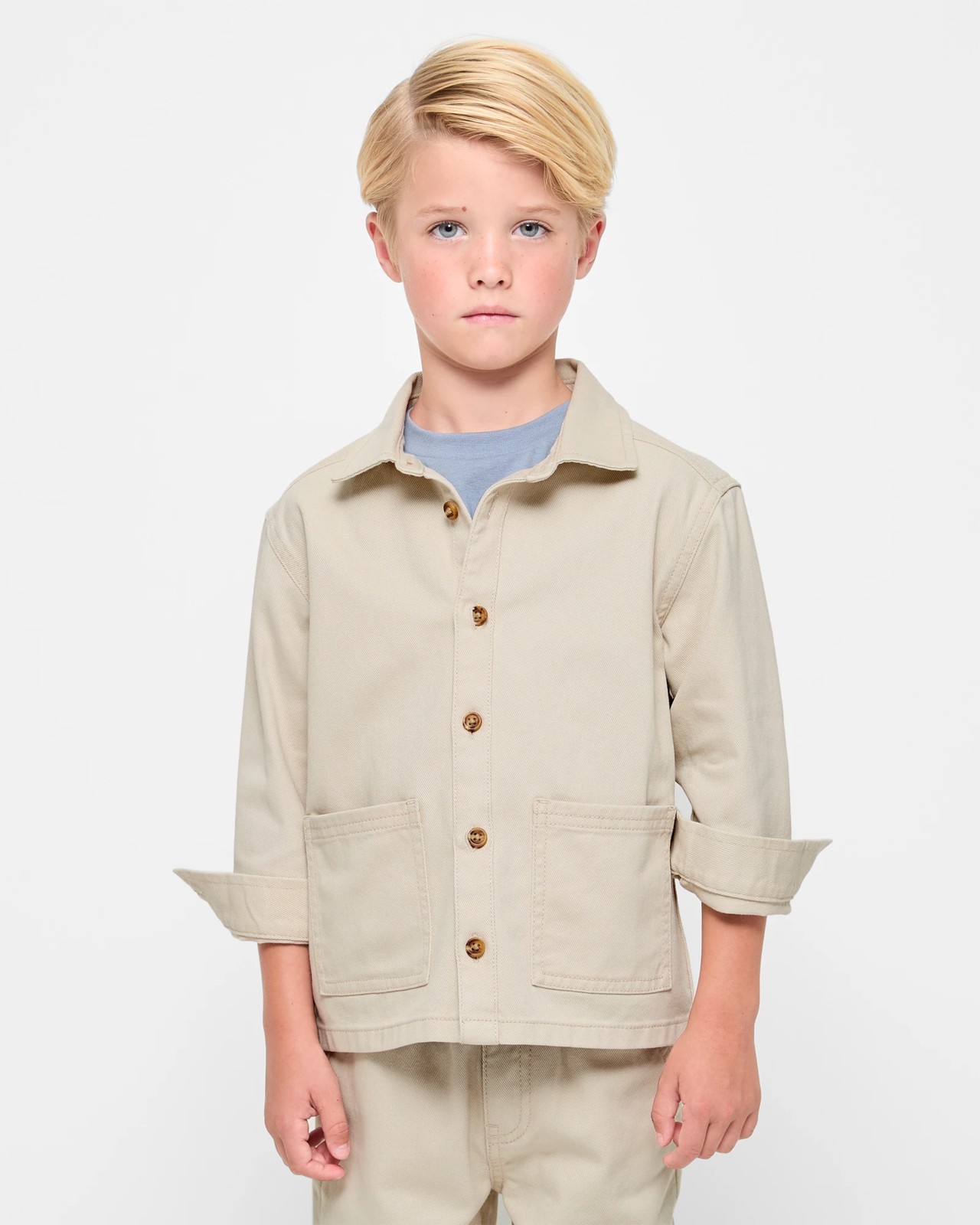 Step up your wardrobe with our Long Sleeve Denim Shacket Shirt, perfect for any boy looking for both comfort and style. This oversized denim shacket in a chic stone colour features a classic collar and buttoned cuffs, making it the ideal choice for layering over tees or under jackets. With its button-down front and twin front pockets, it combines practicality with a trendy look. The straight hem provides a relaxed fit that’s perfect for everyday wear. Don't miss out on this versatile piece – grab yours today for an effortlessly cool vibe.