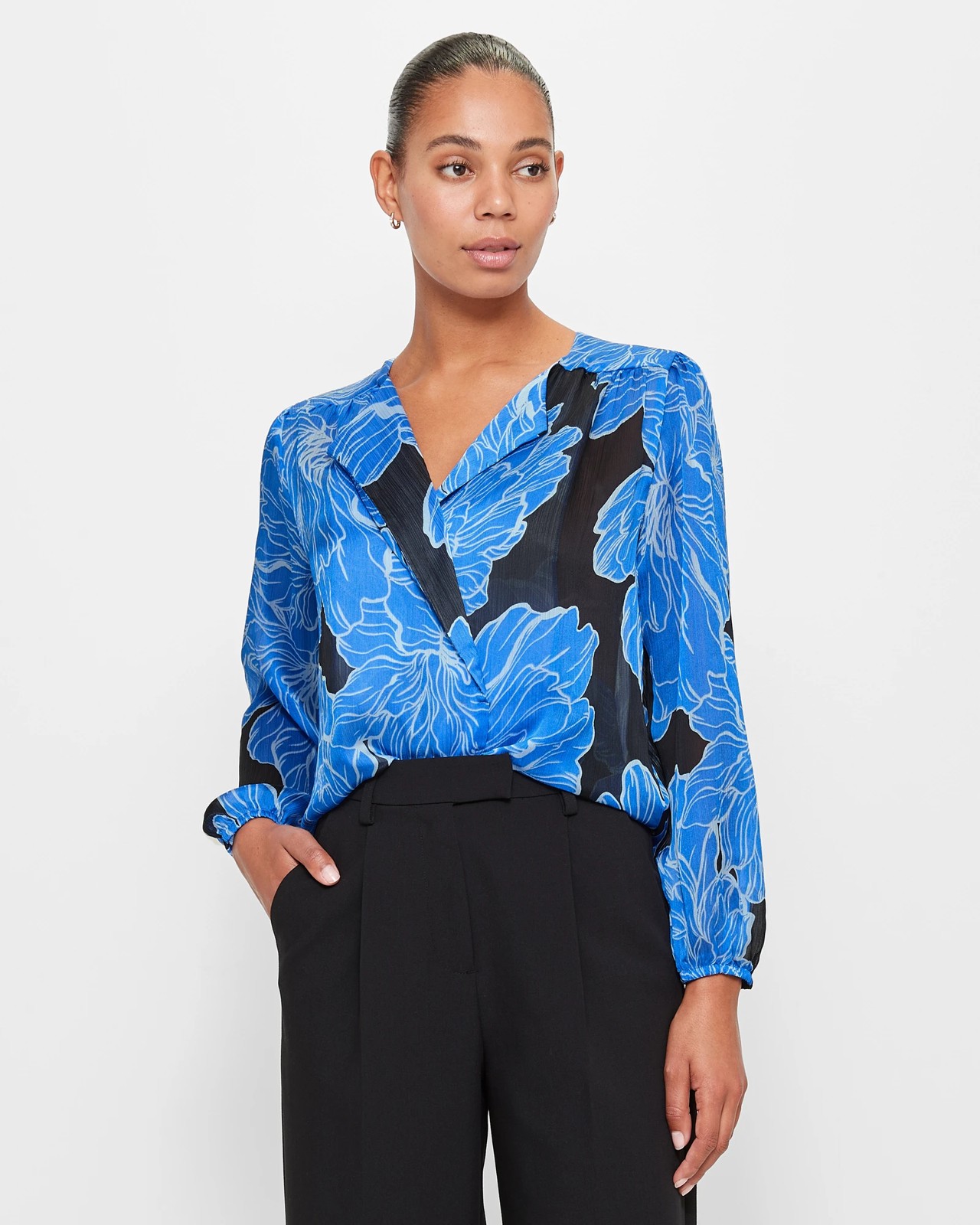Imagine yourself confidently stepping out in style with our Long Sleeve Drape Neck Blouse. Crafted from a polyester blend that includes recycled materials, the blouse exudes elegance and sustainability. Its lightweight sheer fabric provides comfort, while the regular fit and cross over front enhance your silhouette. The blouse features a round neckline with stylish front fold-over lapels, gathering across shoulders, and long elastic cuff sleeves for added charm. Complete your look with the high-low hemline that adds a touch of flair. Elevate your wardrobe with our versatile and chic blouse today!