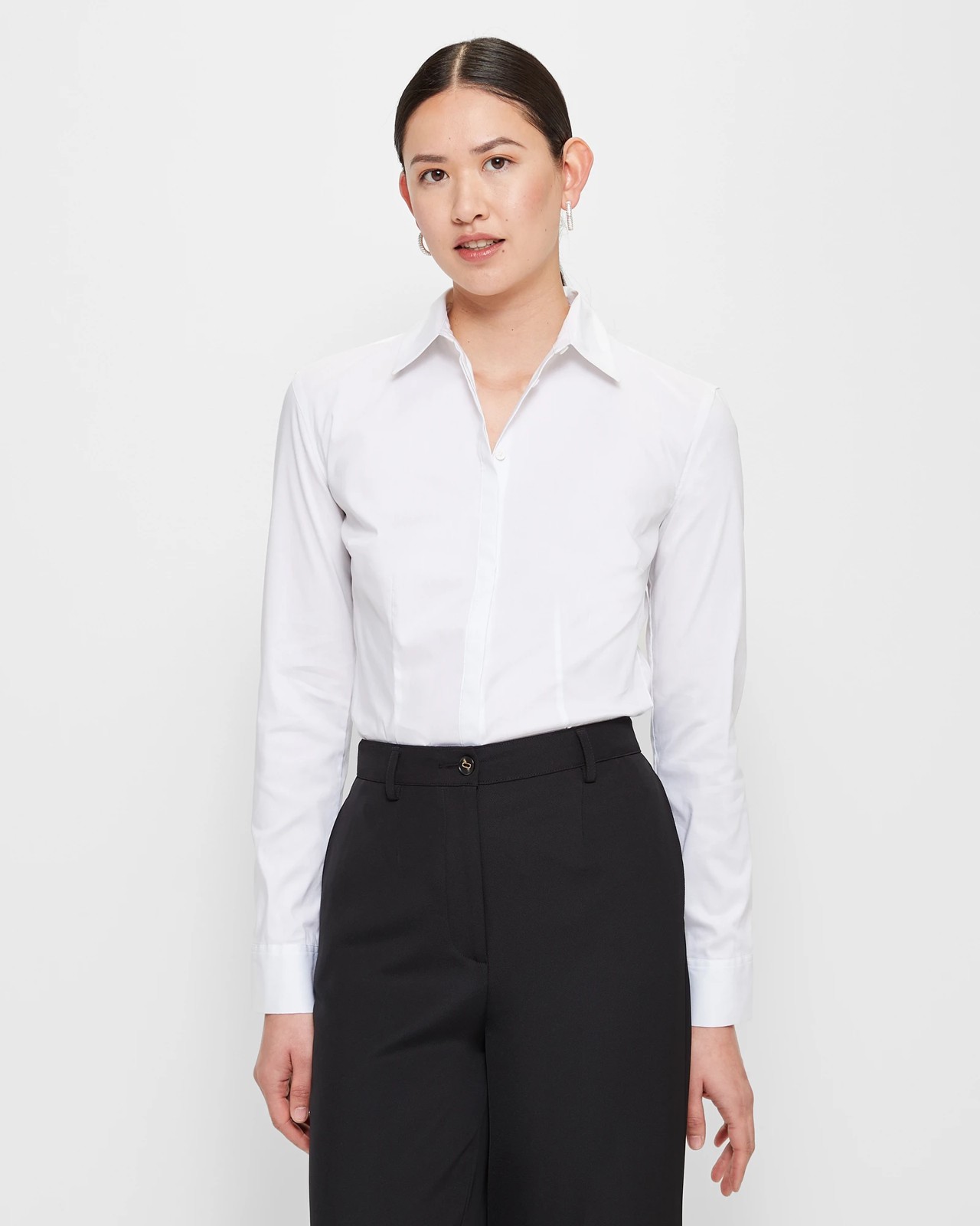 Introducing the Long Sleeve Fitted Shirt from Preview. Crafted from a cotton/nylon blend, this slim fit shirt is designed for maximum comfort. It features a round collar neckline with a hidden button through front and long button cuffed sleeves. Darting at the chest and a curved hemline complete the look for an effortlessly stylish finish. Perfect for any occasion, this shirt is sure to become a wardrobe favourite.