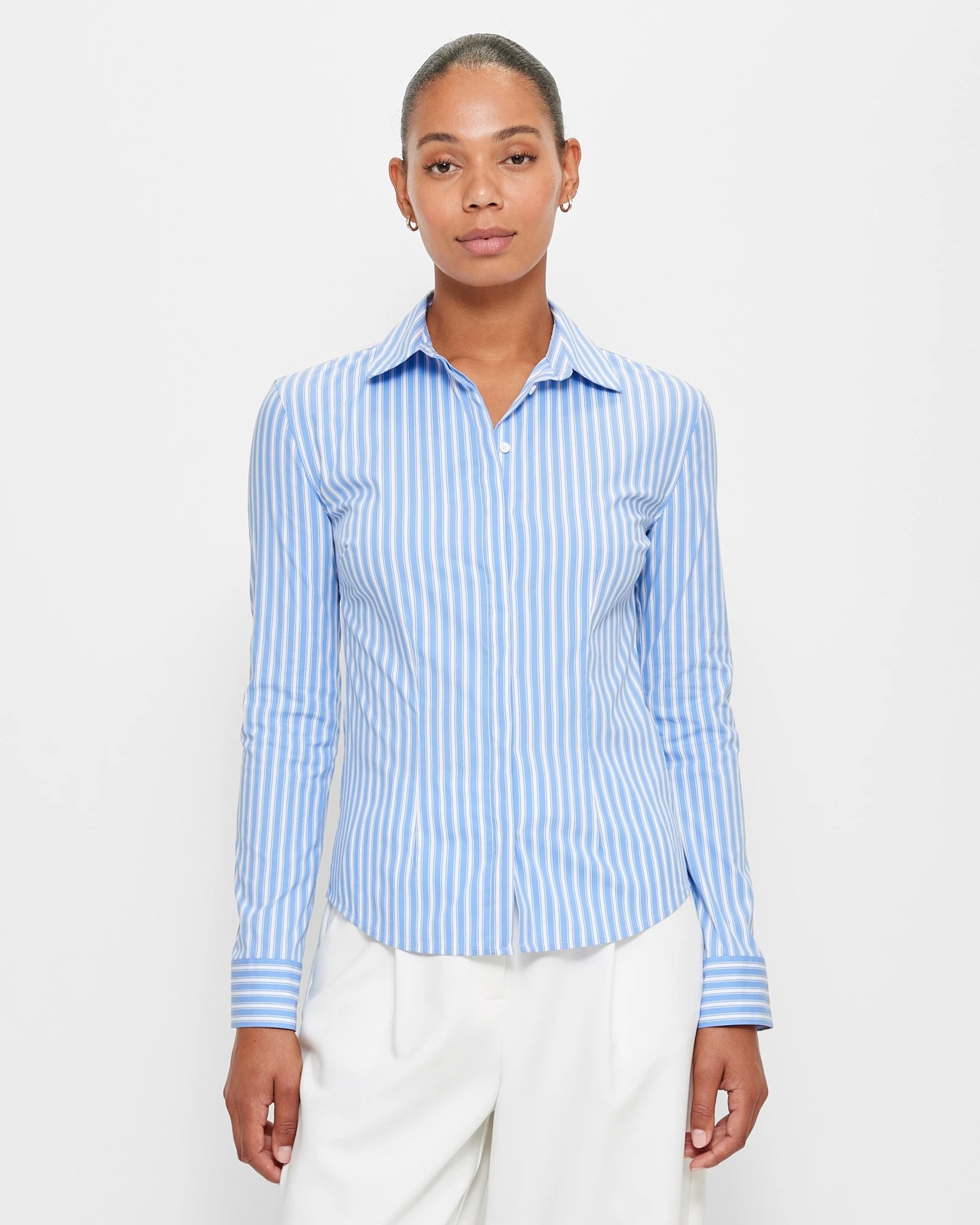 Introducing the Long Sleeve Fitted Shirt from Preview. Crafted from a cotton/nylon blend, this slim fit shirt is designed for maximum comfort. It features a round collar neckline with a hidden button through front and long button cuffed sleeves. Darting at the chest and a curved hemline complete the look for an effortlessly stylish finish. Perfect for any occasion, this shirt is sure to become a wardrobe favourite.