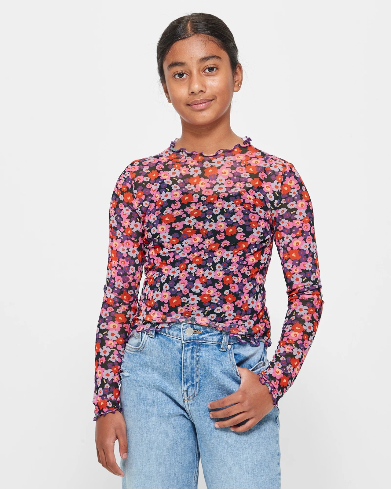 Long Sleeve Floral Mesh 2 Piece Top 1 of 6