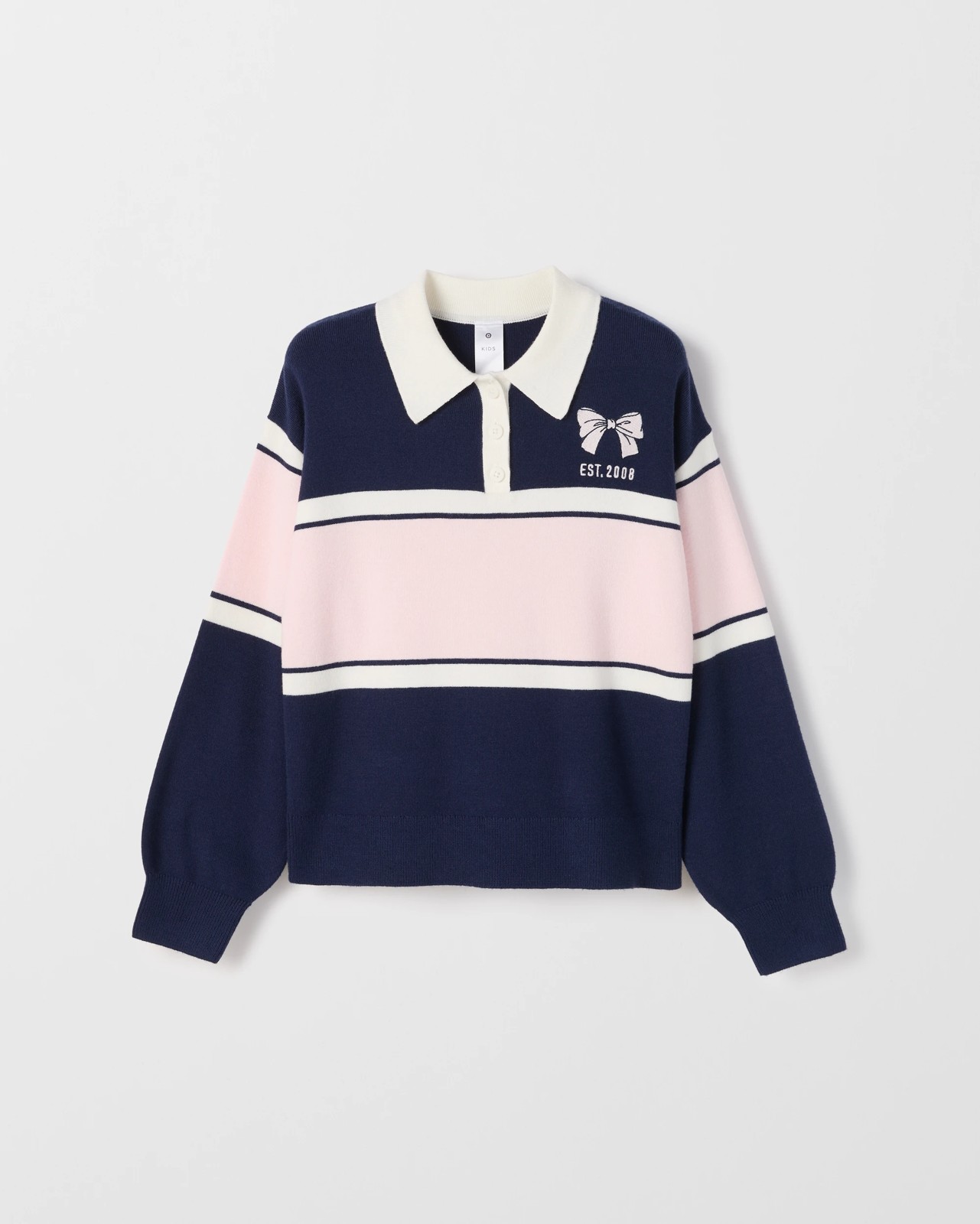 Long Sleeve Loose Knit Rugby Jumper - Navy Pink Bow
