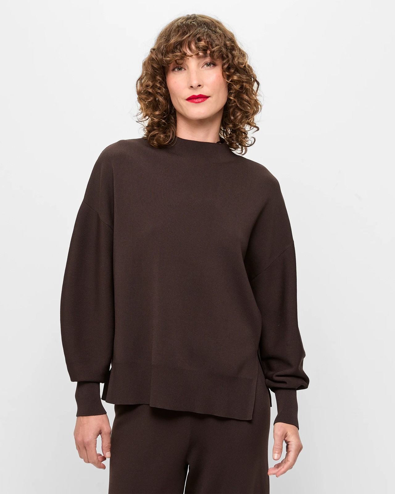 Experience ultimate style and comfort with our Long Sleeve Mock Neck Crepe Knit Jumper. Made from a fine nylon and viscose blend, this jumper feels light and features a chic crepe knit texture. The high mock neckline and ribbed knit cuffs add a touch of class, making it suitable for both casual gatherings and cosy nights in. Designed with a regular fit and side seam splits, it ensures you stay comfortable while looking stylish. Incorporate this adaptable piece into your wardrobe to enhance your everyday fashion.