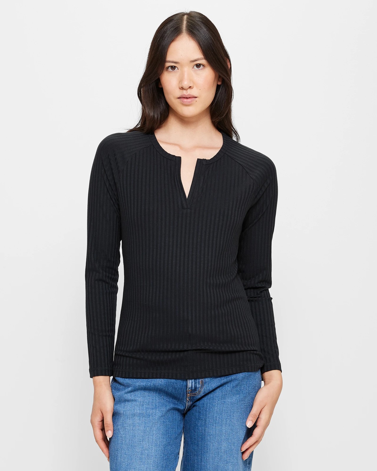 Introducing our Long Sleeve Notch Neck Top for women. This top is made from a comfortable blend of polyester and viscose, with added stretch for ultimate comfort. It also contains recycled materials, making it a sustainable choice. The all over ribbed look adds a touch of style to this regular fit top. Featuring a round neckline with a stylish front v-notch drop, this top is perfect for any occasion. Complete with long sleeves and a straight hemline, it is a versatile addition to your wardrobe. Upgrade your style with our Long Sleeve Notch Neck Top today!