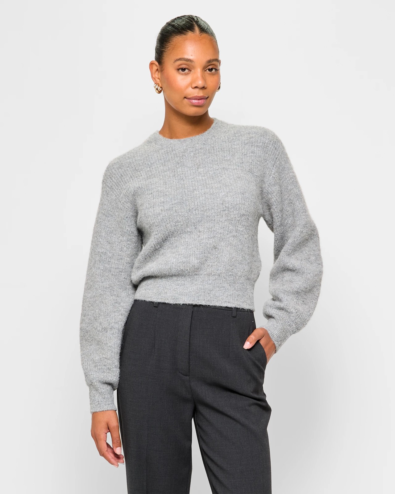 Discover the comfort of our Long Sleeve Plush Balloon Sleeve Crew Jumper. This jumper is made from a polyester, nylon, and wool blend with a touch of elastane for the perfect fit. Featuring a plush ribbed knit, it feels incredibly soft against your skin. The regular fit, crew neckline, and stylish balloon sleeves with cuffs make it a go-to piece for any casual outfit. Its short length and thick hemline provide a modern touch, making it perfect to pair with jeans or skirts. Add this must-have jumper to your wardrobe today for ultimate comfort and style.