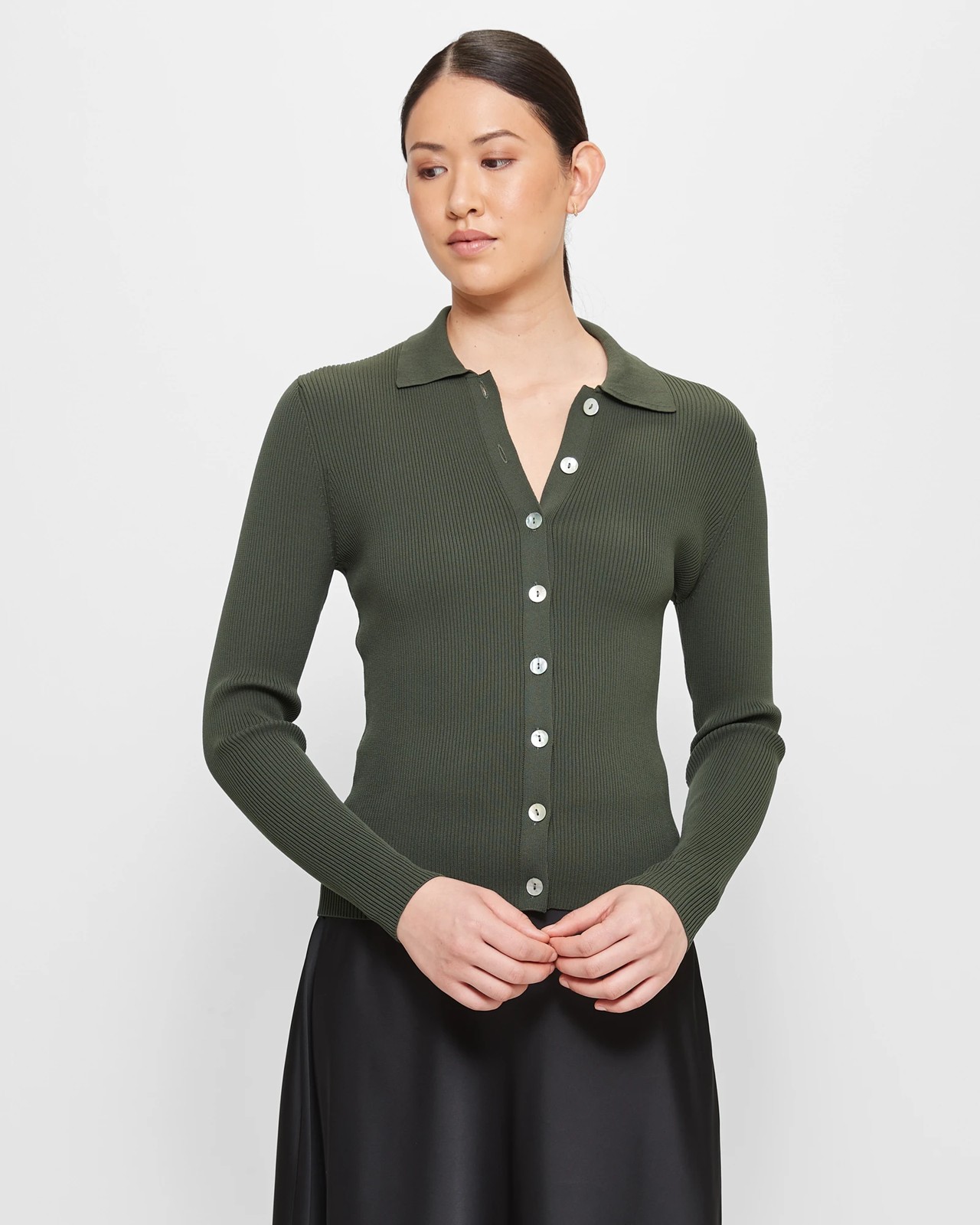 Get a sneak peek with this Preview cardigan. It is made from a polyester fabric that contains recycled materials, making it an eco-friendly choice. The all over ribbed design adds a stylish touch to this regular-fit cardigan, while the round collared neckline and long sleeves provide a classic look. With a button-through front and straight hemline, this cardigan is both fashionable and versatile. Whether you're dressing up for a special occasion or keeping it casual, this cardigan is a must-have in your wardrobe. Upgrade your style with the Long Sleeve Rib Collar Cardigan by Preview now!