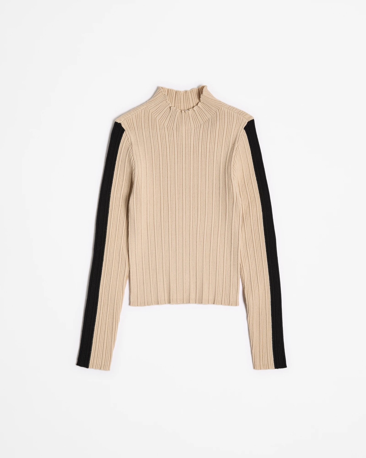 This Long Sleeve Rib Mock Neck Knit is a must-have addition to her wardrobe. Made from a top-quality viscose poly nylon blend, it ensures a snug and comfortable fit. The stylish funnel collar with a delicate lettuce trim adds a touch of sophistication, making it versatile enough for any occasion. The long sleeves and straight hem offer both warmth and style. Enhance her everyday look with this chic and cosy top, designed to make her feel fabulous!