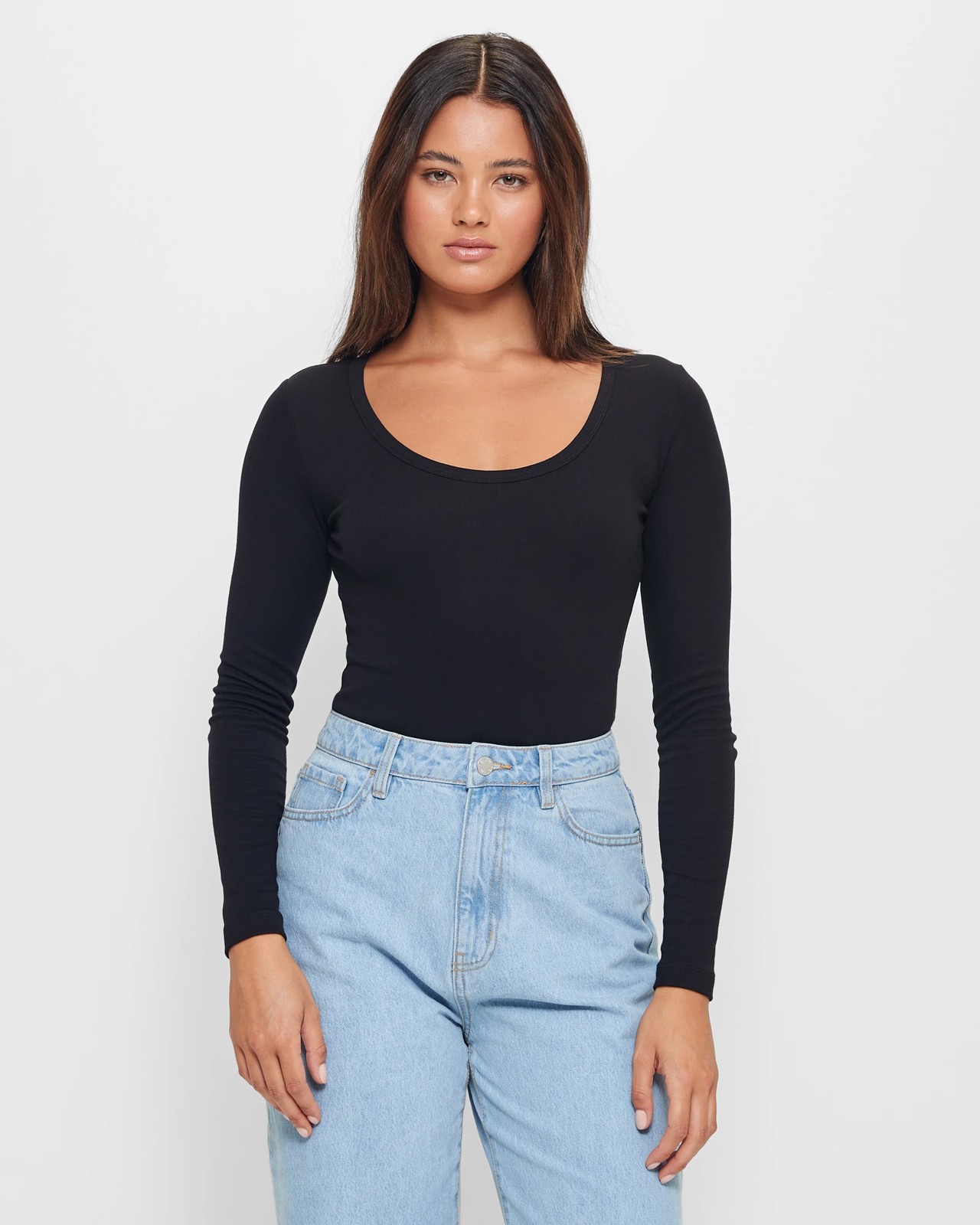 Introducing the Long Sleeve Scoop Neck Bodysuit from Lily Loves. Made from a cotton-rich fabric, this bodysuit offers maximum comfort with its stretchy material and slim fit. The scoop neckline adds a touch of elegance, while the long sleeves provide extra warmth and style. The high cut leg elongates your figure, and the snap stud closure at the crotch ensures easy wearability. With cheeky back coverage, this bodysuit is perfect for both casual and dressy occasions. Choose the Lily Loves Long Sleeve Scoop Neck Bodysuit for a versatile and fashionable addition to your wardrobe.