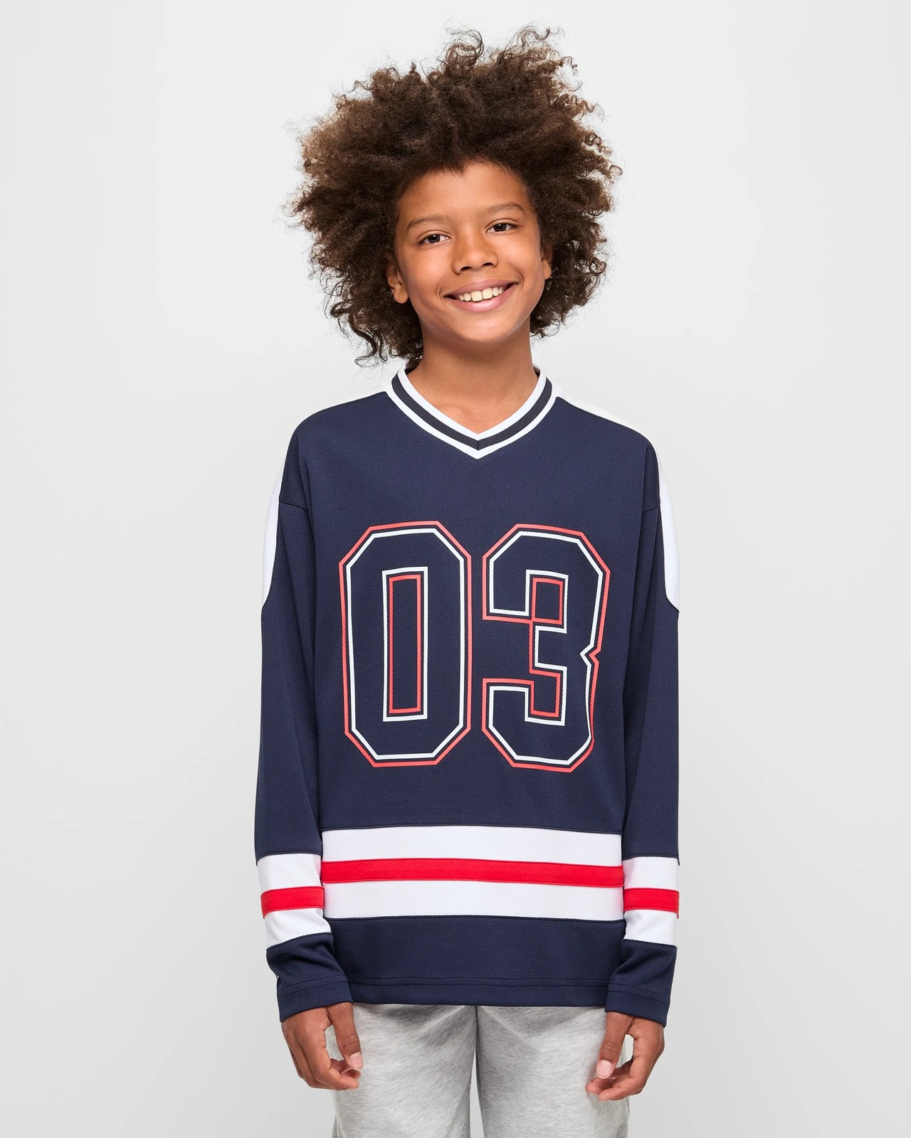 Step up your game with this stylish Long Sleeve Sports Jersey. Comfy and designed for young athletes, it comes with a ribbed v-neck and long sleeves featuring smart panelled splicing, ensuring you perform at your best. The vibrant sports print on the front adds a touch of flair, while its roomy fit allows for maximum movement. Ideal for both practise and casual wear, this jersey is perfect for any young sports fan. Grab yours now and bring your athletic wardrobe to the next level.