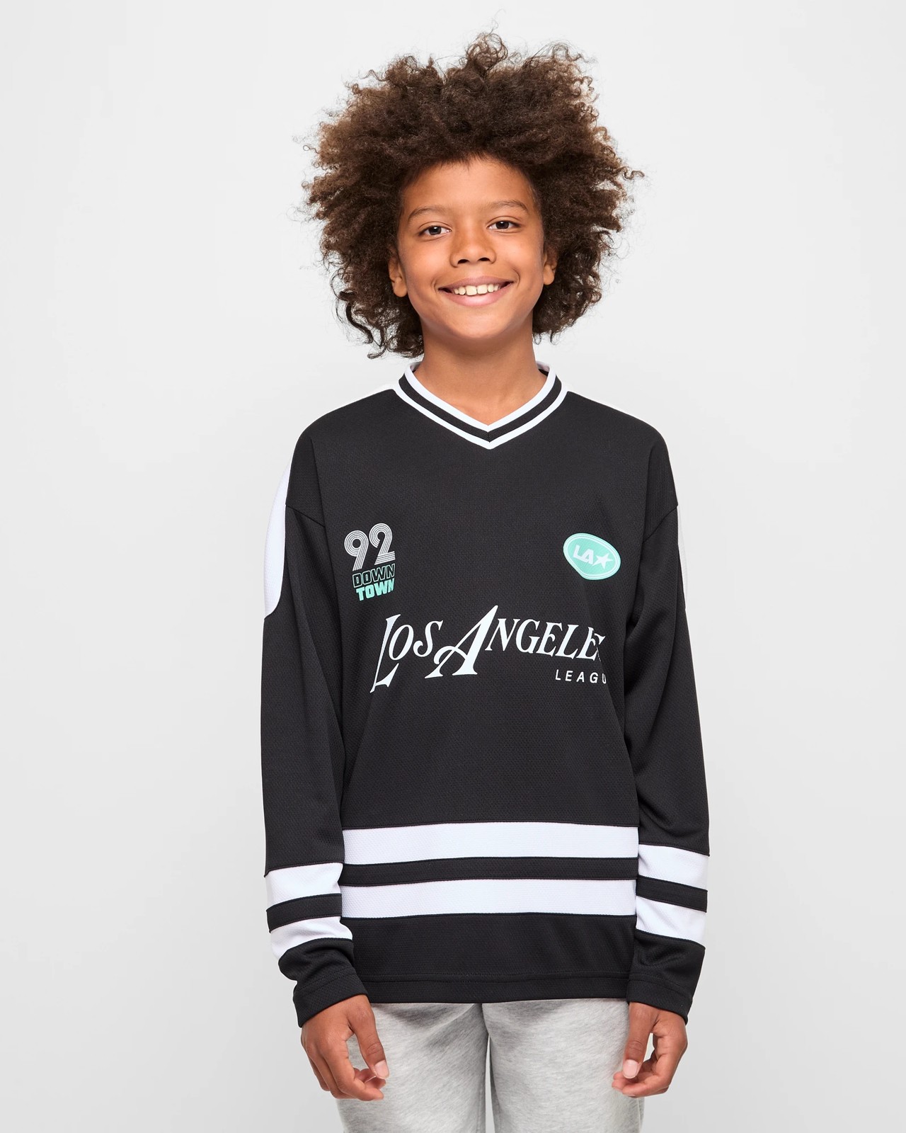 Step up your game with this stylish Long Sleeve Sports Jersey. Comfy and designed for young athletes, it comes with a ribbed v-neck and long sleeves featuring smart panelled splicing, ensuring you perform at your best. The vibrant sports print on the front adds a touch of flair, while its roomy fit allows for maximum movement. Ideal for both practise and casual wear, this jersey is perfect for any young sports fan. Grab yours now and bring your athletic wardrobe to the next level.