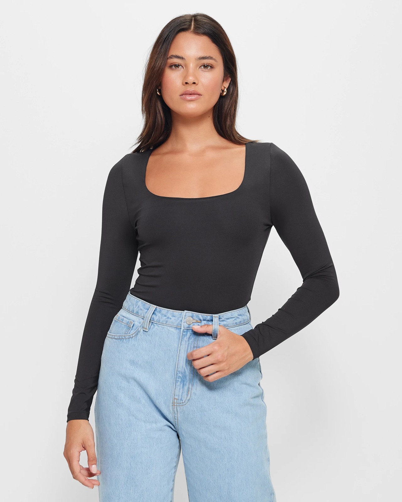 Introducing the Long Sleeve Square Neck Bodysuit from Lily Loves. This stunning bodysuit is made from a luxurious polyester rich fabrication that offers both style and comfort. With its slim fit and square neckline, it accentuates your figure in all the right places. The long sleeves add an elegant touch, while the high cut leg elongates your legs for a flattering silhouette. The snap button closure at the crotch ensures ease of wear, and the cheeky cut back adds a playful twist. Don't miss out on this must-have bodysuit. Add it to your collection today!