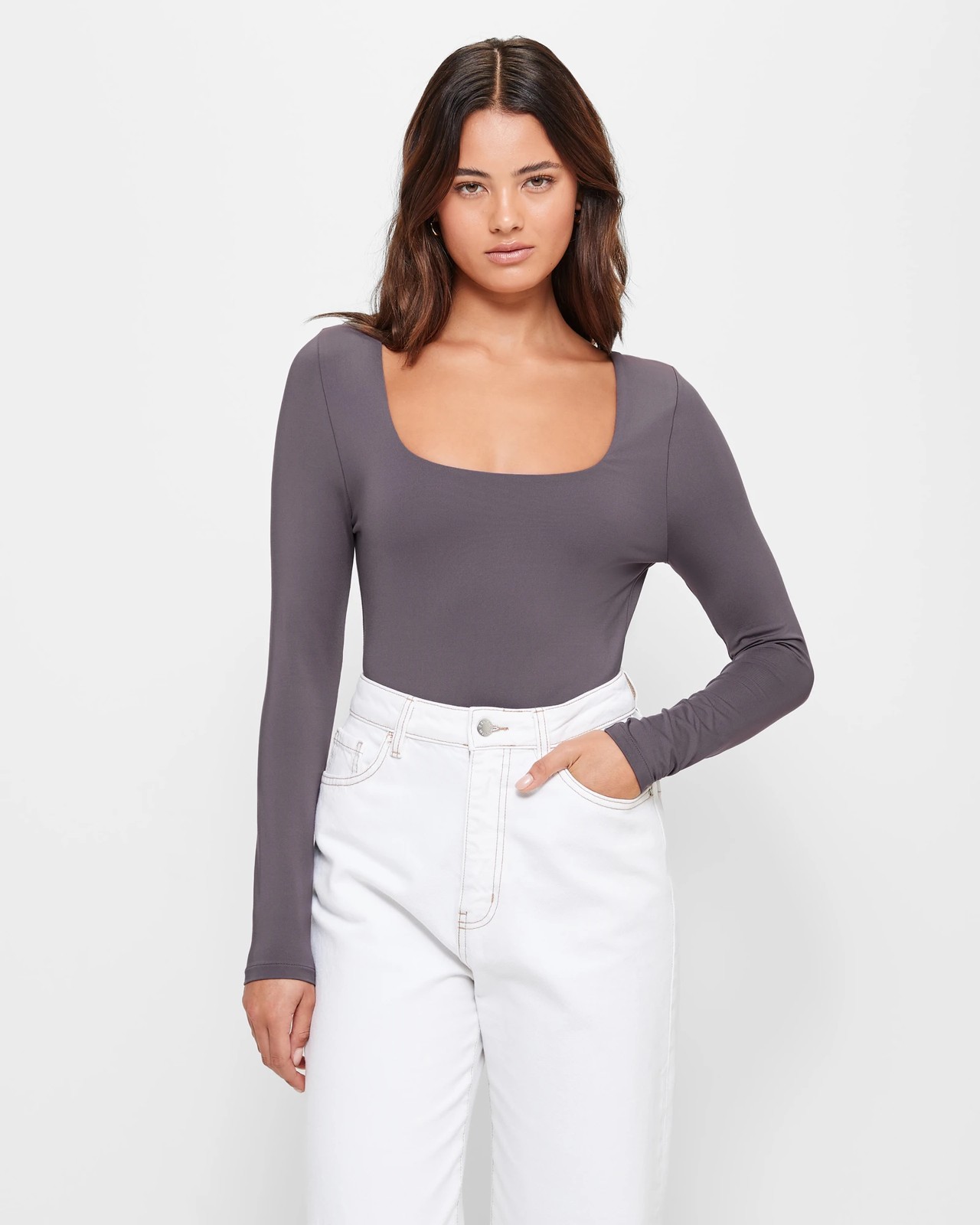 Introducing the Long Sleeve Square Neck Bodysuit from Lily Loves. This stunning bodysuit is made from a luxurious polyester rich fabrication that offers both style and comfort. With its slim fit and square neckline, it accentuates your figure in all the right places. The long sleeves add an elegant touch, while the high cut leg elongates your legs for a flattering silhouette. The snap button closure at the crotch ensures ease of wear, and the cheeky cut back adds a playful twist. Don't miss out on this must-have bodysuit. Add it to your collection today!