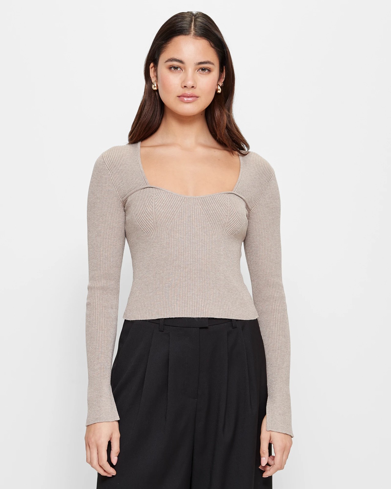 Welcome to the comfort and style world of Lily Loves! Indulge in the elegance and softness of our Long Sleeve Knit Sweetheart Top. Crafted from a luxurious blend of viscose and nylon and featuring LENZING™ ECOVERO™ branded viscose fibes, our top offers an all-over ribbed design and a flattering sweetheart neckline that accentuates your silhouette. With a regular fit, covered shoulders, long sleeves with inner seam split and a chic crop length, you'll feel effortlessly sophisticated in any setting. Elevate your wardrobe with our timeless piece and embrace the Lily Loves experience today.