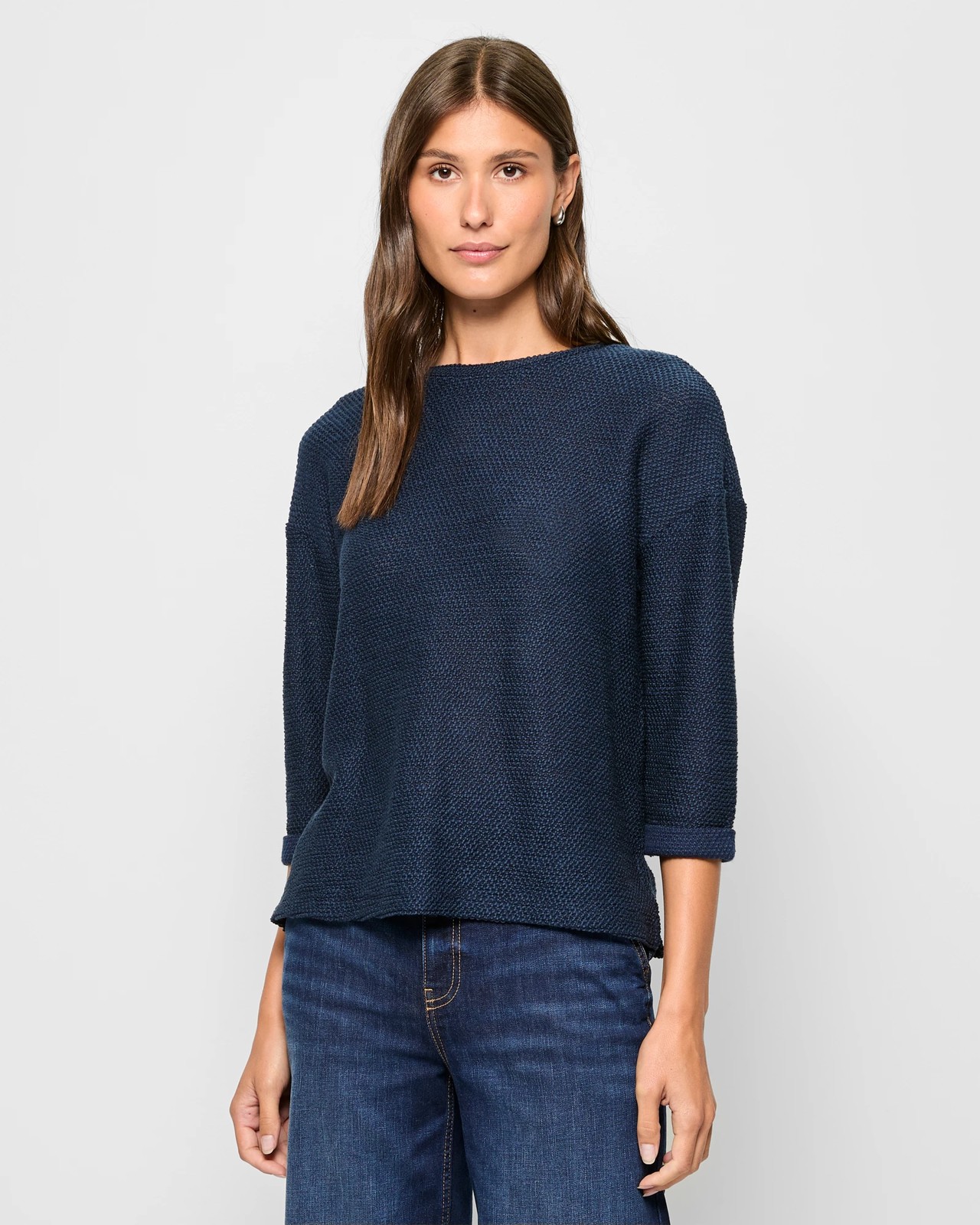 Discover comfort and style with our Long Sleeve Textured Knitted Top. Crafted from a blend of cotton and polyester, experience a lightweight and airy feel all day long. The unique textured design gives a touch of sophistication to your outfit. With a regular fit and classic round neckline, you'll enjoy a perfect blend of casual and chic. The long roll cuffed sleeves add a trendy twist, while the side seam splits provide extra flexibility. Elevate your wardrobe with a top that offers both quality and fashion. Find your perfect fit today!