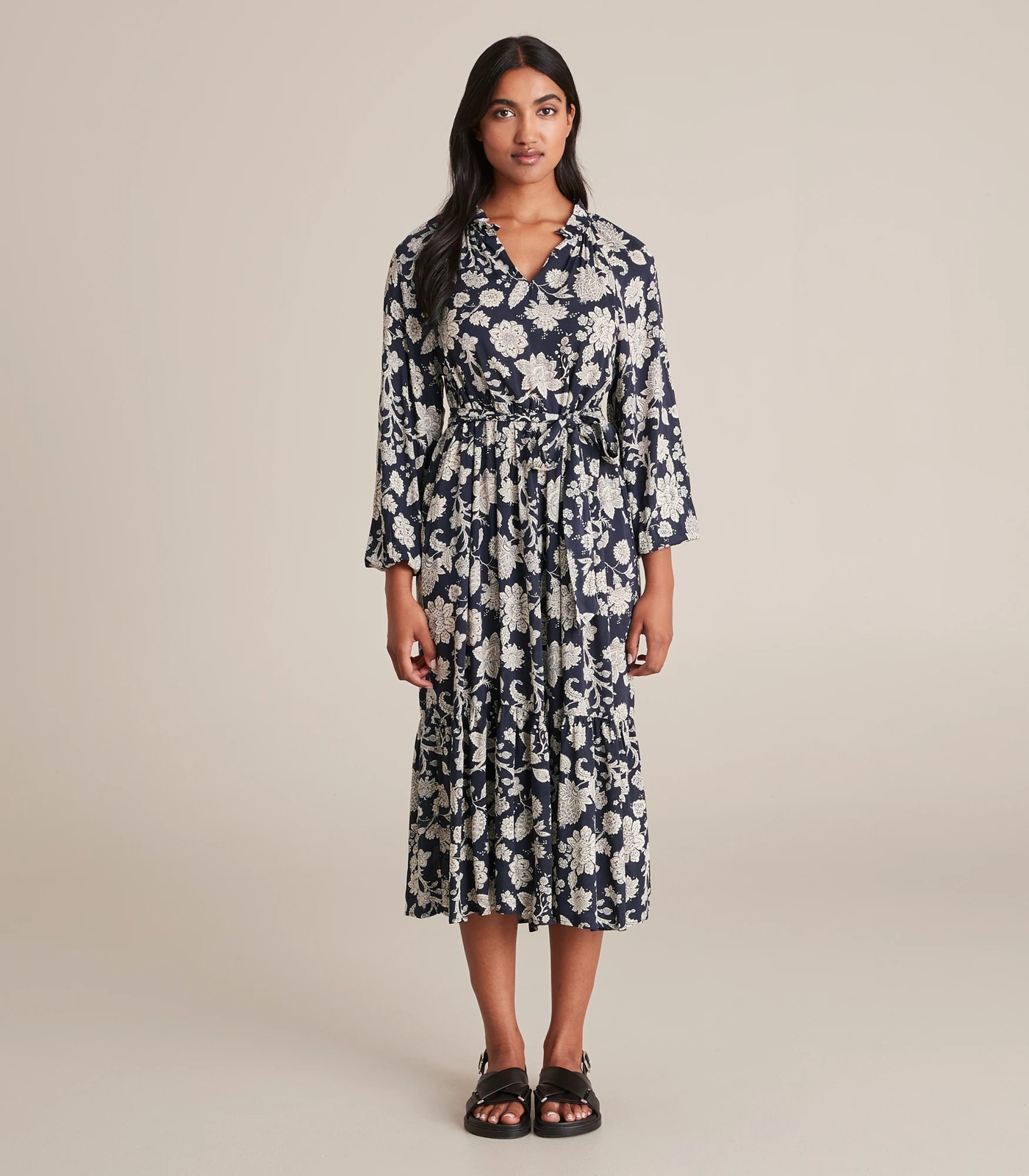 A cute everyday dress, the printed long sleeve tiered maxi dress will look perfect as you get about your day in the sun. Made from a soft viscose material, it also had long sleeves and a maxi length for coverage and a cute all over paisley floral print.