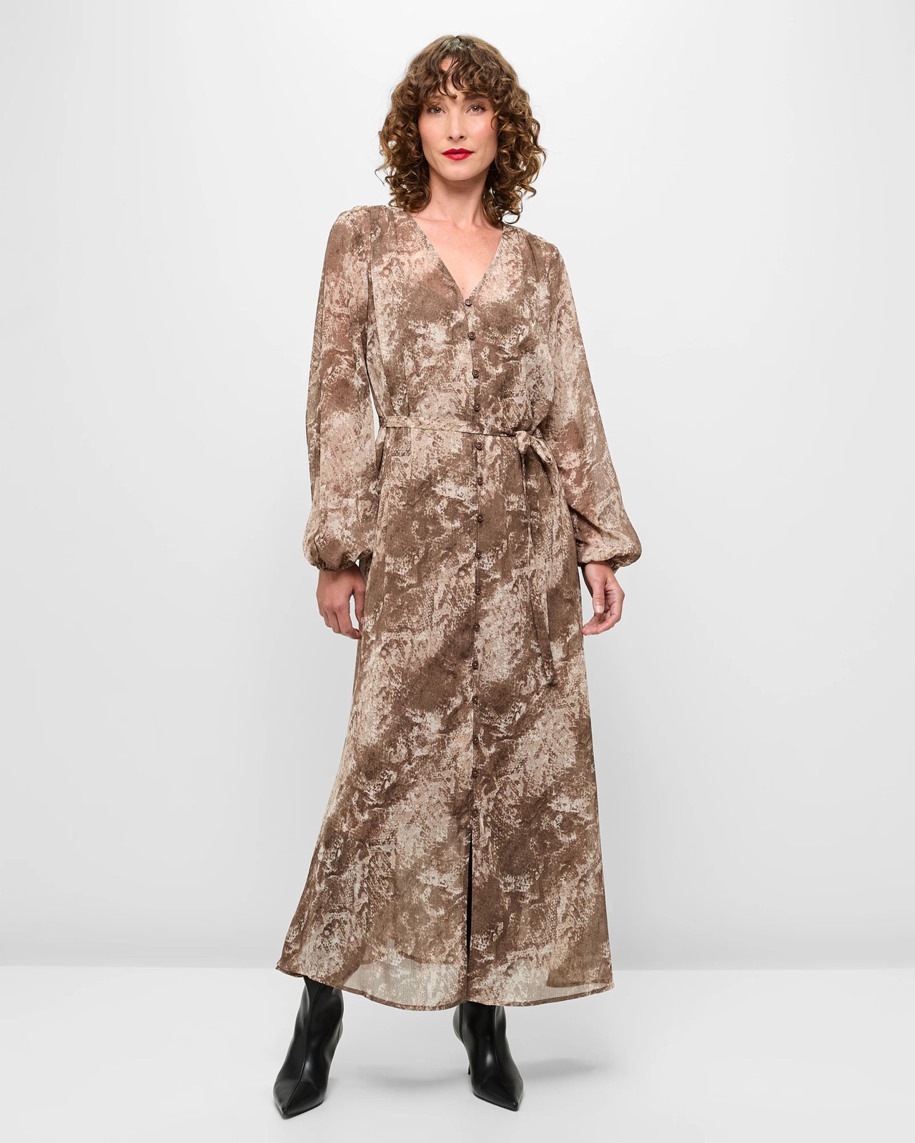 Discover the charm of the Long Sleeve V-Neck Midi Dress, designed to combine comfort and style seamlessly. Made from lightweight polyester with an added sheer overlay, this dress boasts a v-neckline and gathered shoulders for a chic look. The long sleeves with elastic cuffs and a button-through front enhance its classic appeal. Complete with a removable tie waist belt, it offers versatile styling options. An inner cami dress ensures a confident and easy fit. Perfect for any special event or casual outing, make it yours and experience the difference today.