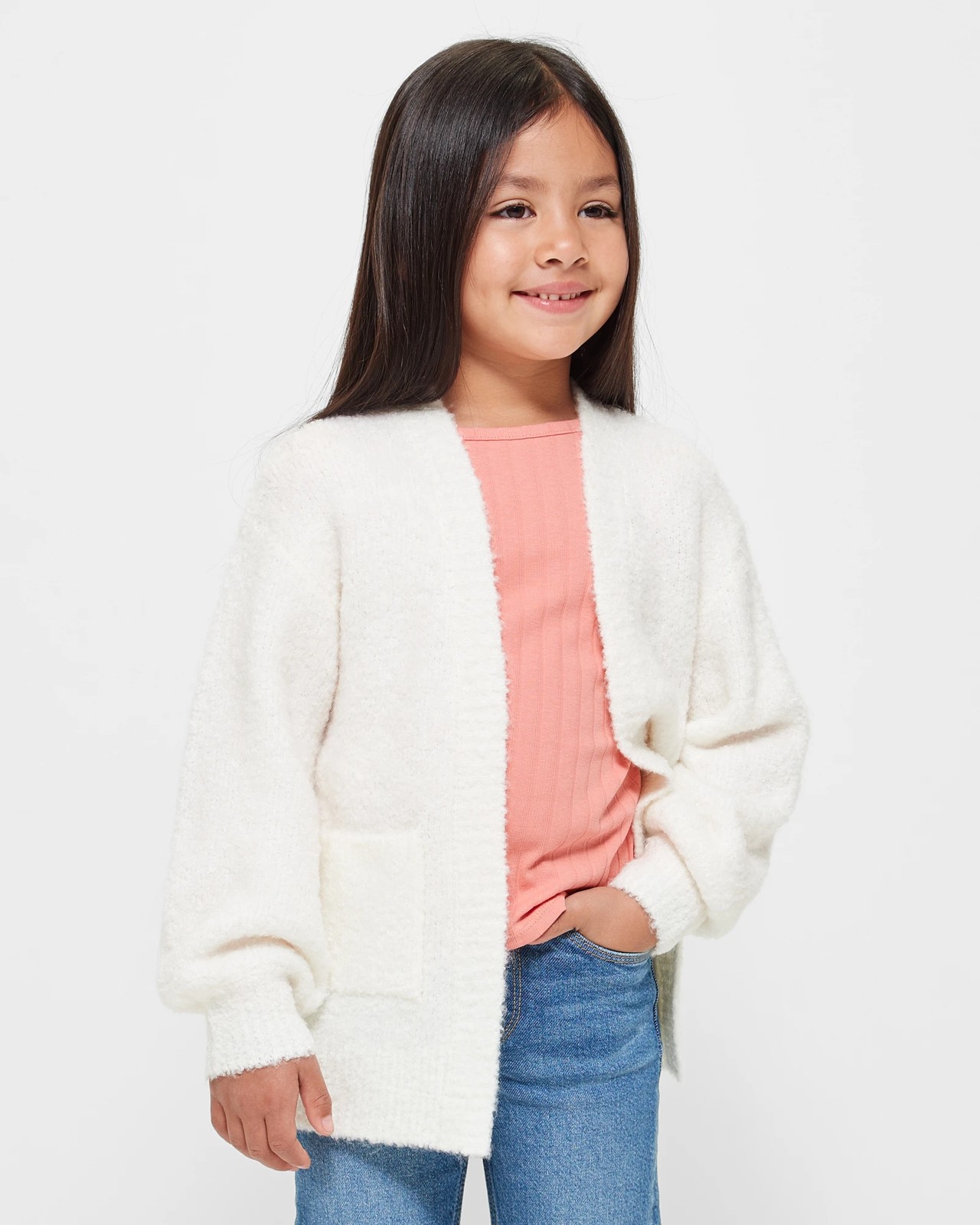 Step into style with our Longline Boucle Cardigan, featuring an irresistible blend of comfort and elegance. Made from a luxurious acrylic poly blend soft boucle knit, this cardigan boasts a longline fit and long balloon sleeves for a trendy look. Complete with twin front pockets and a straight hem, this piece is both practical and stylish. Elevate your little one's wardrobe with this versatile and cosy cardigan.
