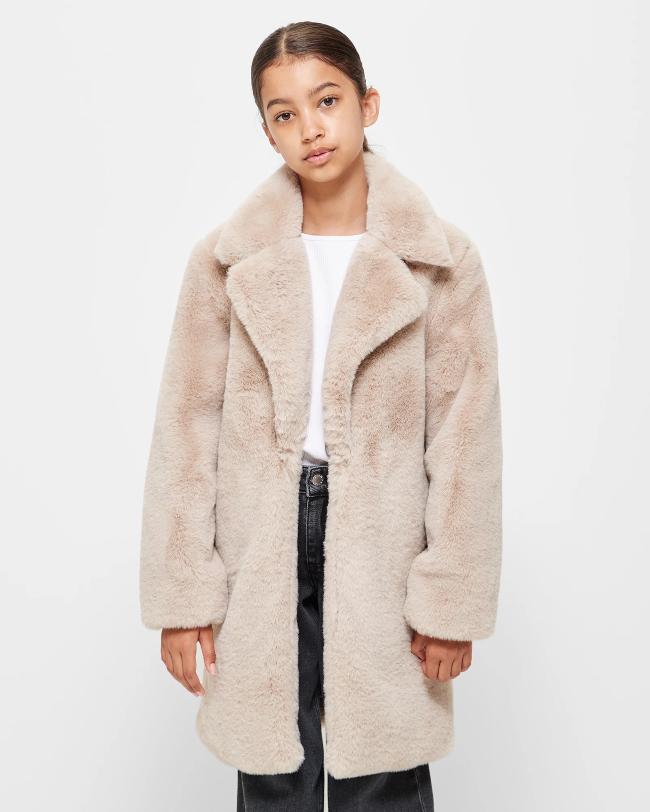 Step into elegance with our Longline Faux Fur Jacket, designed to keep you stylish and warm. The faux fur offers a sophisticated look, perfect for any occasion. With its chic beige hue and longline fit, this jacket will effortlessly elevate any outfit. The collared design and long sleeves ensure maximum comfort and warmth, while the side seam pockets add a touch of practicality. Make a statement and embrace the colder months in comfort and style. Don't miss out on this must-have addition to your wardrobe - get yours today!