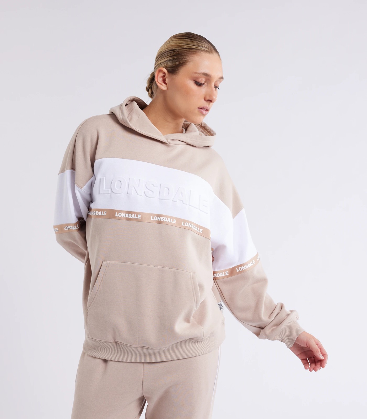 Enhance your wardrobe with the Lonsdale Women's Tamworth Hoodie, designed to add a touch of urban chic to your outfit. Versatile for indoor or outdoor wear, whether for workouts, casual outings, or relaxing at home. The hoodie features an eye-catching embossed logo and a contrasting panel for a modern look. With convenient kanga pockets, enjoy both style and practicality in one hoodie. Elevate your streetwear game with a wardrobe essential you won't want to be without.