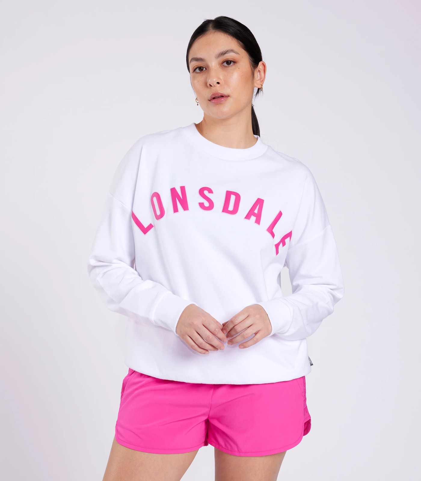 This Lonsdale London Basingstoke Sweatshirt is the perfect addition to your relaxed wardrobe. Crafted from a polyester and cotton blend, it has a relaxed oversized fit, rib hem and cuffs and a straight hemline. It also features a puff printed logo on the chest and drop shoulders for an edgy look. Available in white, this stylish sweatshirt is sure to be your go-to for off-duty days.