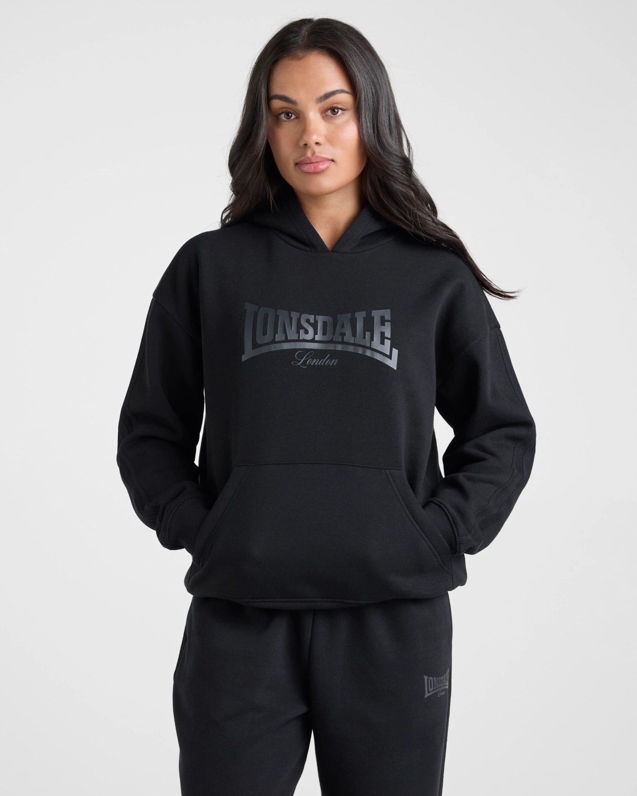 The Lonsdale London Hoodie is a cosy off-duty essential designed for comfort and warmth. Crafted in brushed fleece, it features a classic hooded silhouette with rib trims, striped bind detail and a kangaroo pocket. Finished with Lonsdale branding, it’s perfect for layering on cooler days.