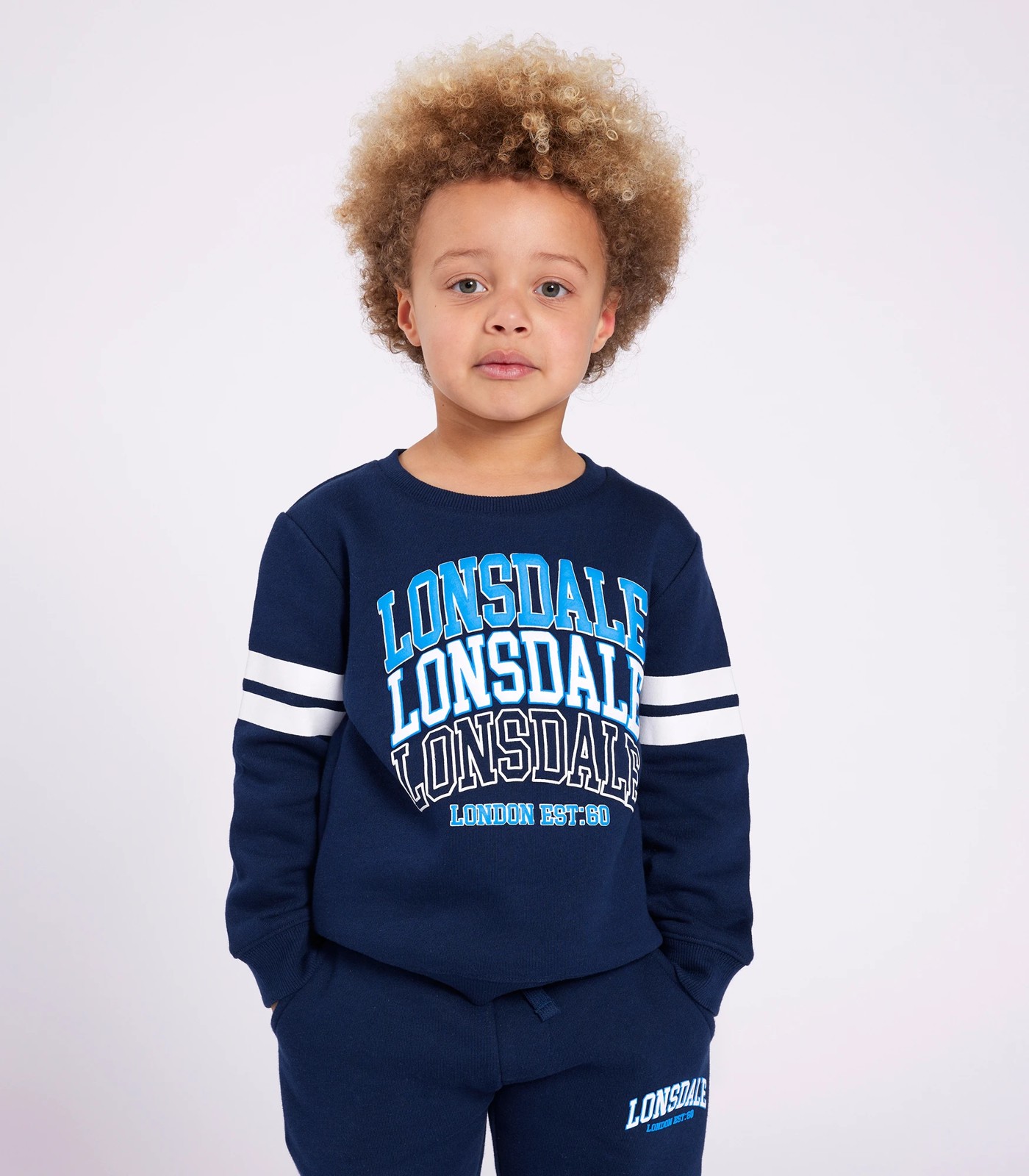 The Riverdale Crew features a cotton / polyester brushed fleece fabrication with rib cuffs and hem for comfort. A classic Lonsdale logo is repeated 3 times on the chest for impact. Your little one is sure to stand out in this stylish crew.