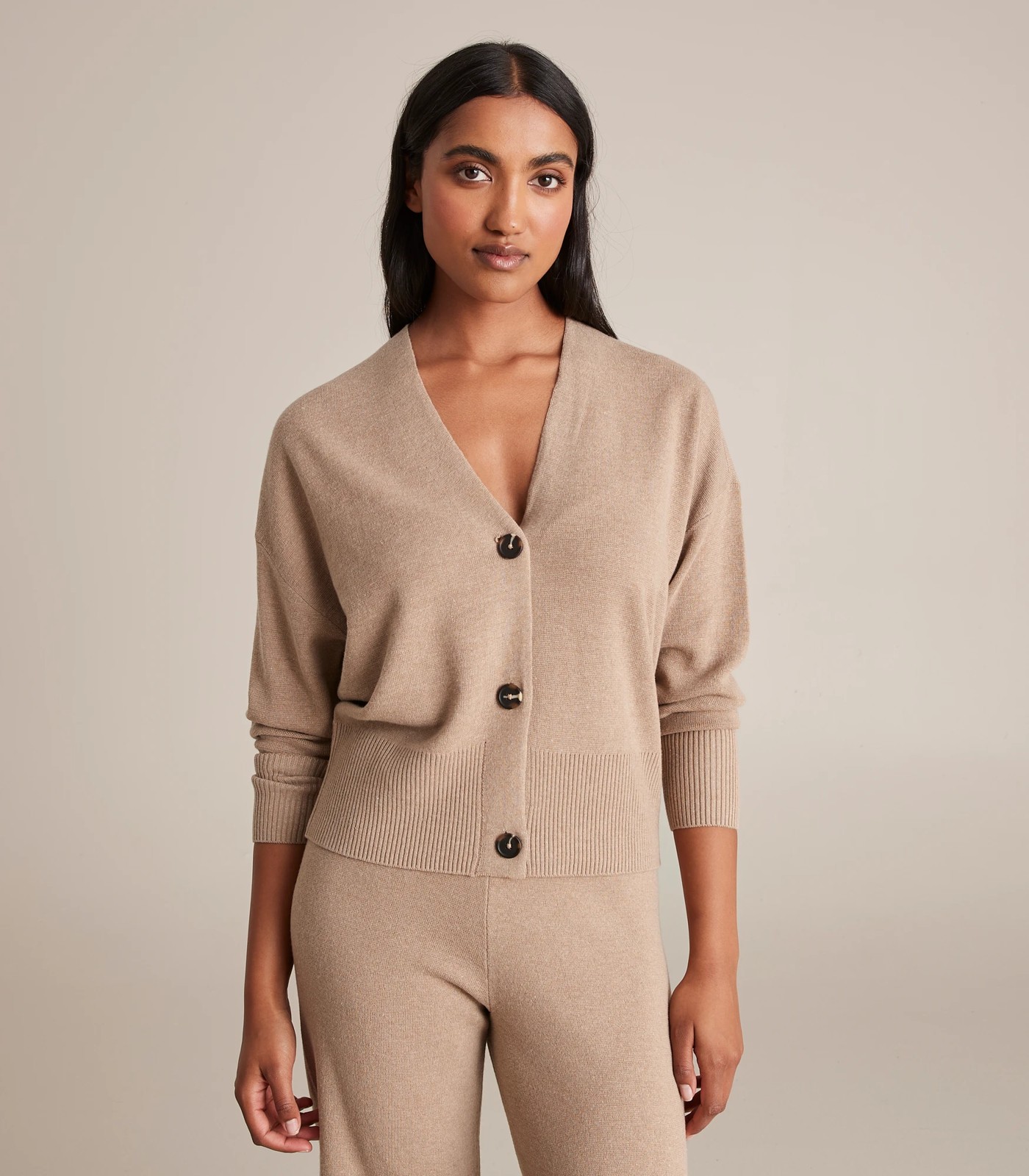 A great coverup and great for layering, the linen blend knitted lounge cardigan has an all over knit design and linen blended material and also features long sleeves, button through front for an easy pull on and a v-neckline.