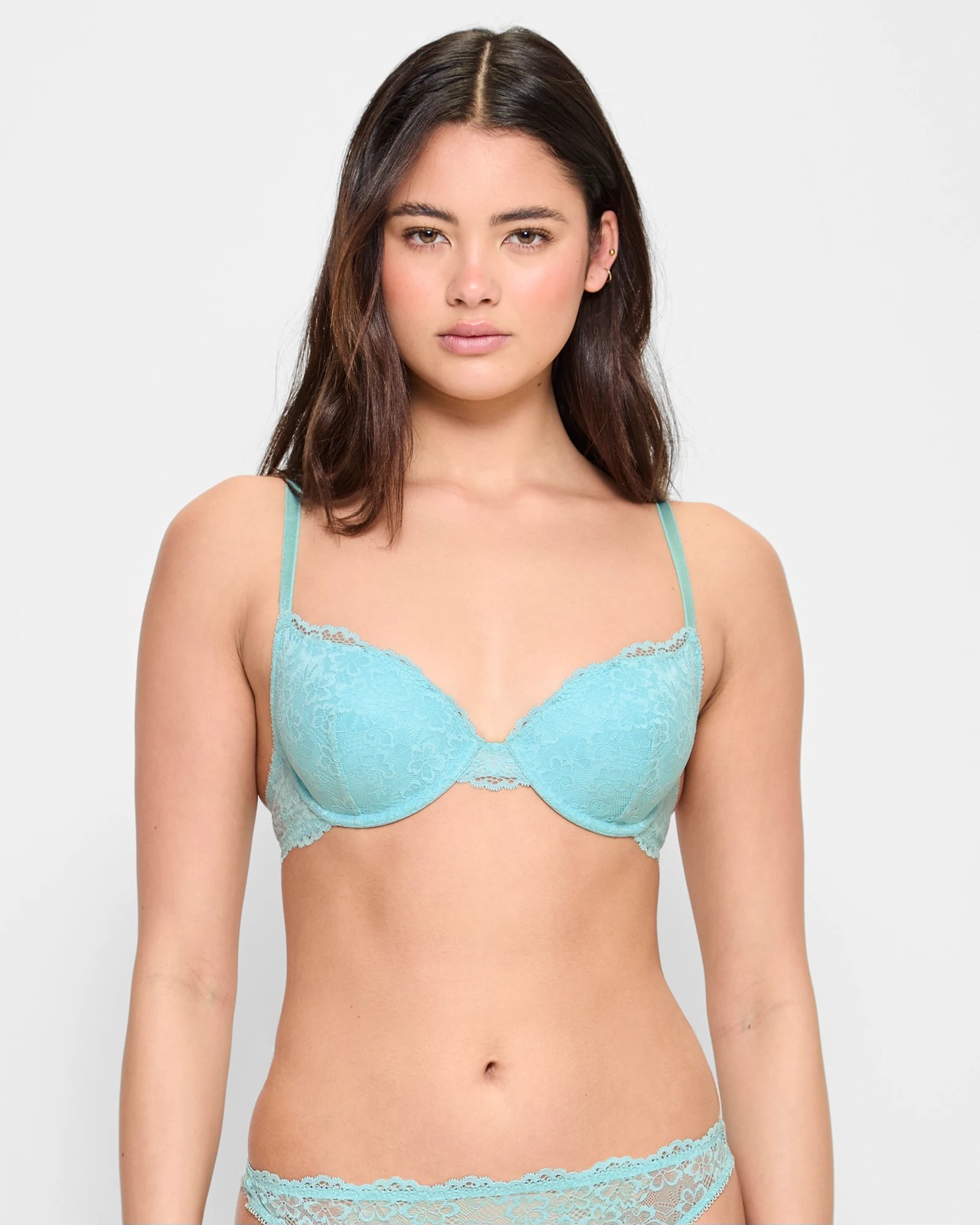Experience comfort and style with the Lucy Lace T-Shirt Bra from Lily Loves. Crafted from a smooth, stretchy nylon blend with recycled materials, the bra offers a regular fit with all-over lace coverage. The sweetheart neckline, thin adjustable shoulder straps and padded cups provide a flattering and supportive design. The underwire and back hook and eye closure ensure a secure and comfortable fit all day long. Treat yourself to the perfect blend of elegance and comfort.