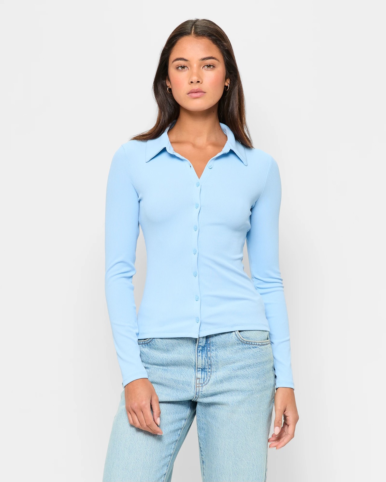 Discover the ultimate blend of style and comfort with the Rib Button Through Top by Lily Loves. Made from a nylon-rich material combined with stretchy elastane, it offers a close yet comfortable fit. The ribbed texture throughout, paired with its slim fit and button-through front, makes it versatile for any occasion. Ideal for both casual and more refined looks, the round neckline and long sleeves add a sophisticated touch. Upgrade your wardrobe effortlessly with this essential piece.