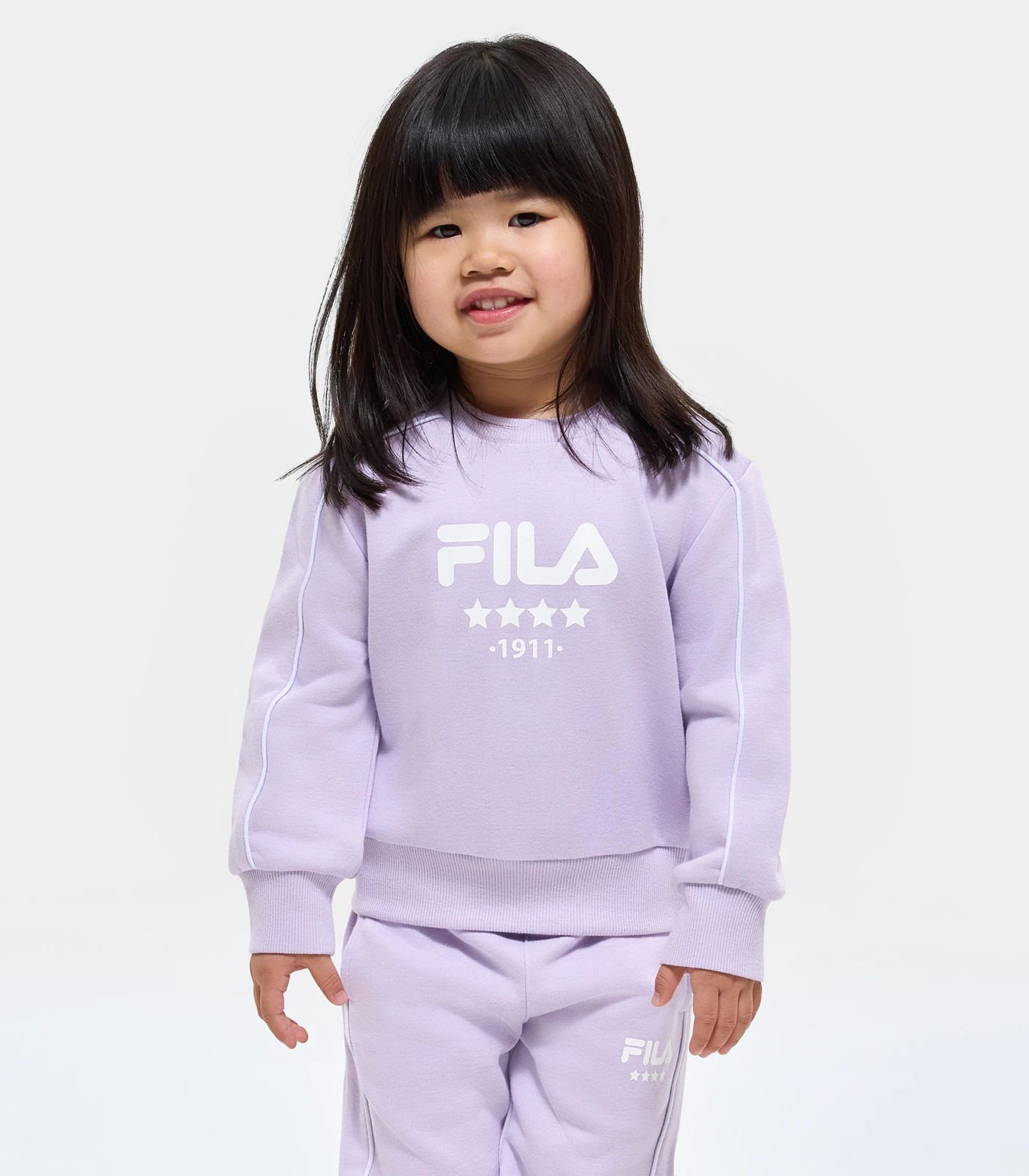 Discover the perfect blend of style and comfort with the Fila Maeve crew Made from Cotton Polyester slightly Brushed French Terry, this jumper ensures your little one will stay cosy and warm. Featuring a Fila print to the centre front chest, contrast piping to the shoulders and sleeves and rib to the neck, hem and sleeves. Upgrade her wardrobe with this must-have crew- she’ll love it, and so will you! Effortlessly pair with the Maeve trackpant (sold separately) in matching colourway for the complete look or style with her favourite bottoms.