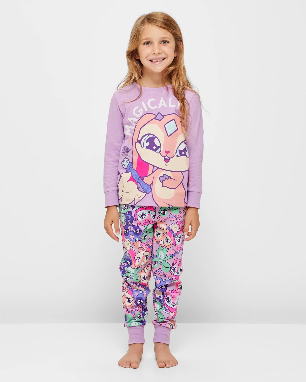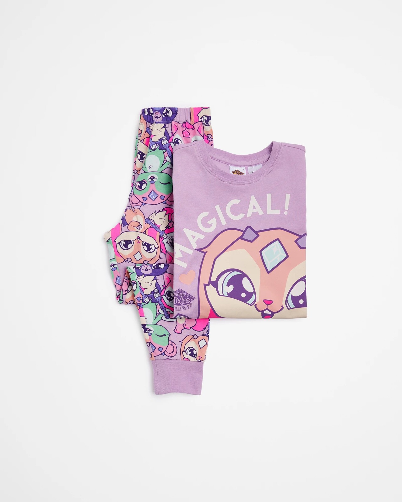Upgrade your little one's bedtime routine with this adorable Magic Mixies Mixlings Cotton Pyjama Set. Made from soft and breathable cotton, this regular fit sleep set is perfect for a comfy night's sleep. The set includes a pink ribbed crew neck top with long sleeves and a large print to the front, as well as matching pants with an elastic waistband and ribbed cuffs. The charming design will capture your child's imagination, while the high-quality fabric ensures maximum comfort. Make bedtime magical and shop this lovely pyjama set today!