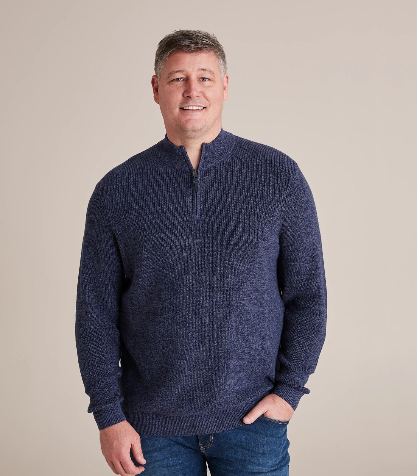 Great for everyday wear as a quick pull on, the Man Plus Half Zip Knit Jumper features a round high neckline with front half zip, an easy pull on design and a long sleeves for coverage and warmth.