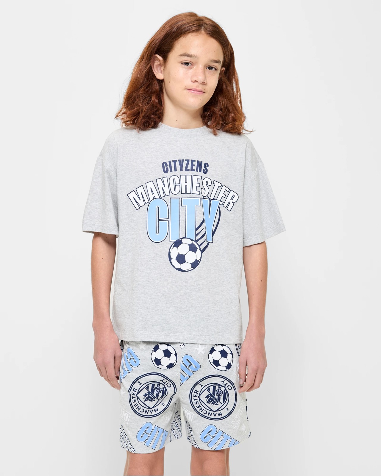 Let your child sleep in style and comfort with this Manchester City FC Cotton Pyjama Set. Made from soft cotton, this regular fit, 2-piece set includes a ribbed crew neck top and matching shorts with an elastic waistband. The bold Manchester FC print on the chest adds an authentic touch for any young fan. Officially licenced, this sleepwear set ensures your little one can support their favourite team even while sleeping. Perfect for any young supporter, it combines comfort and team pride effortlessly.