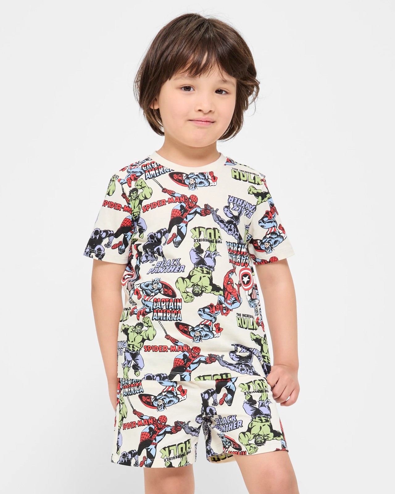 This wonderful Marvel Cotton Pyjama Set is ideal for your young superhero. Made from soft cotton, it provides a cosy night's sleep with its regular fit and comfy crew neck. The lively all-over Marvel print ignites the imagination, while the matching shorts come with an elastic waistband for ease of wear. Your child will eagerly anticipate bedtime every evening. Purchase this fantastic set today and turn sleeping into an exciting adventure!