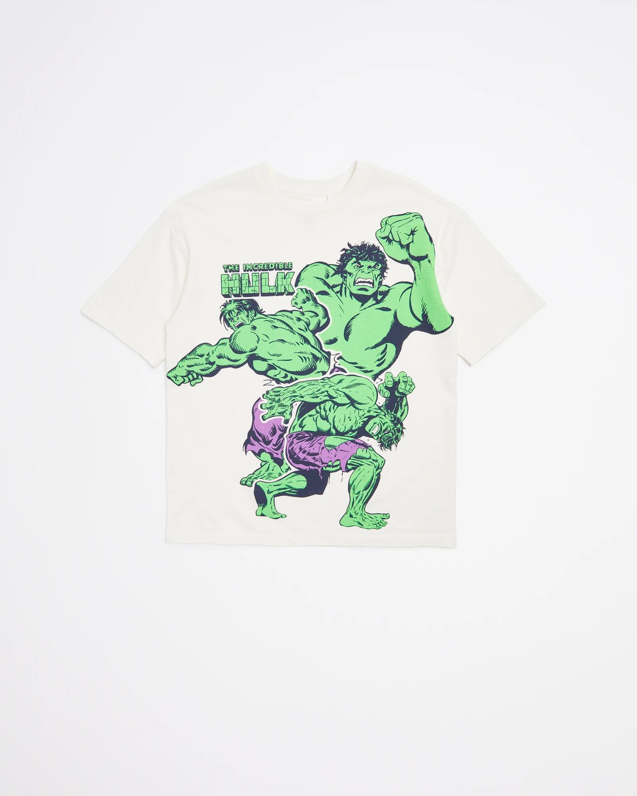 Make a statement with this Marvel Hulk Oversized T-shirt. Crafted from cotton rich fabric, it features an oversized fit for added comfort and style. The white t-shirt is finished with a ribbed crew neck and large Hulk print to the front, while the short sleeves and straight hem complete the look. Perfect for any Marvel fan!