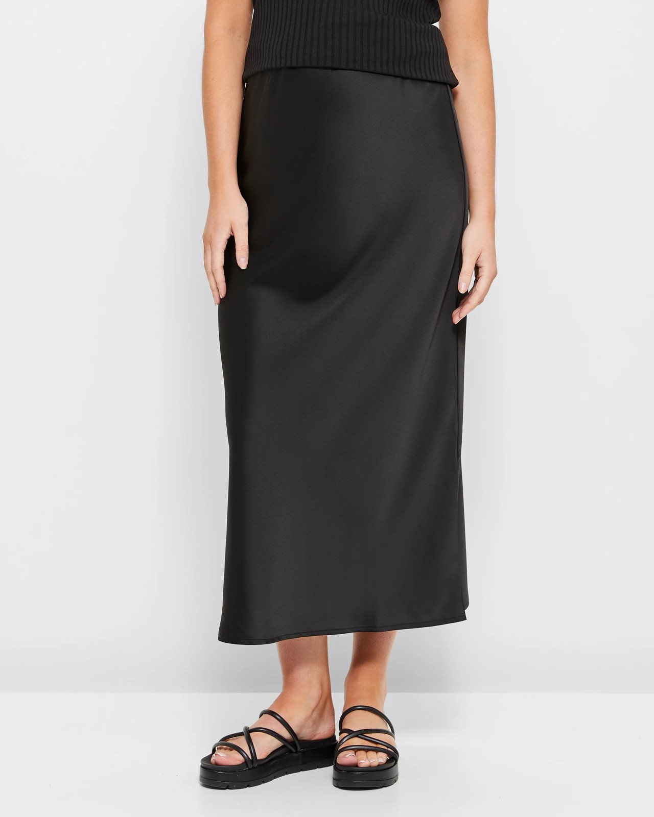Make a stylish statement with Target Maternity's Bias Cut Midi Skirt. Made from a polyester rich fabrication with stretch for comfort, this midi length skirt features a shiny exterior and regular fit. It's designed to be worn over the belly and has a hidden elastic waistband for added comfort. The bias cut gives it an extra element of style, while the straight hemline completes the look. Perfect for any occasion, you'll look and feel your best in this stylish maternity skirt.