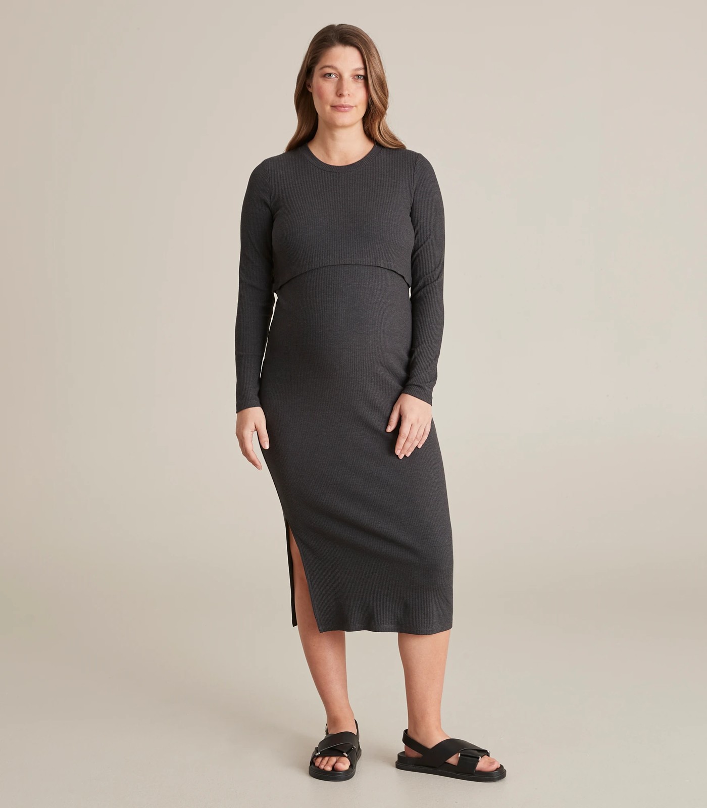 Be completely comfortable pre and post baby in our Maternity nursing bodycon dress. Made from breathable cotton rich fabric, it also features a round neckline, a modesty overlay for easy feeding and a bodycon cut.