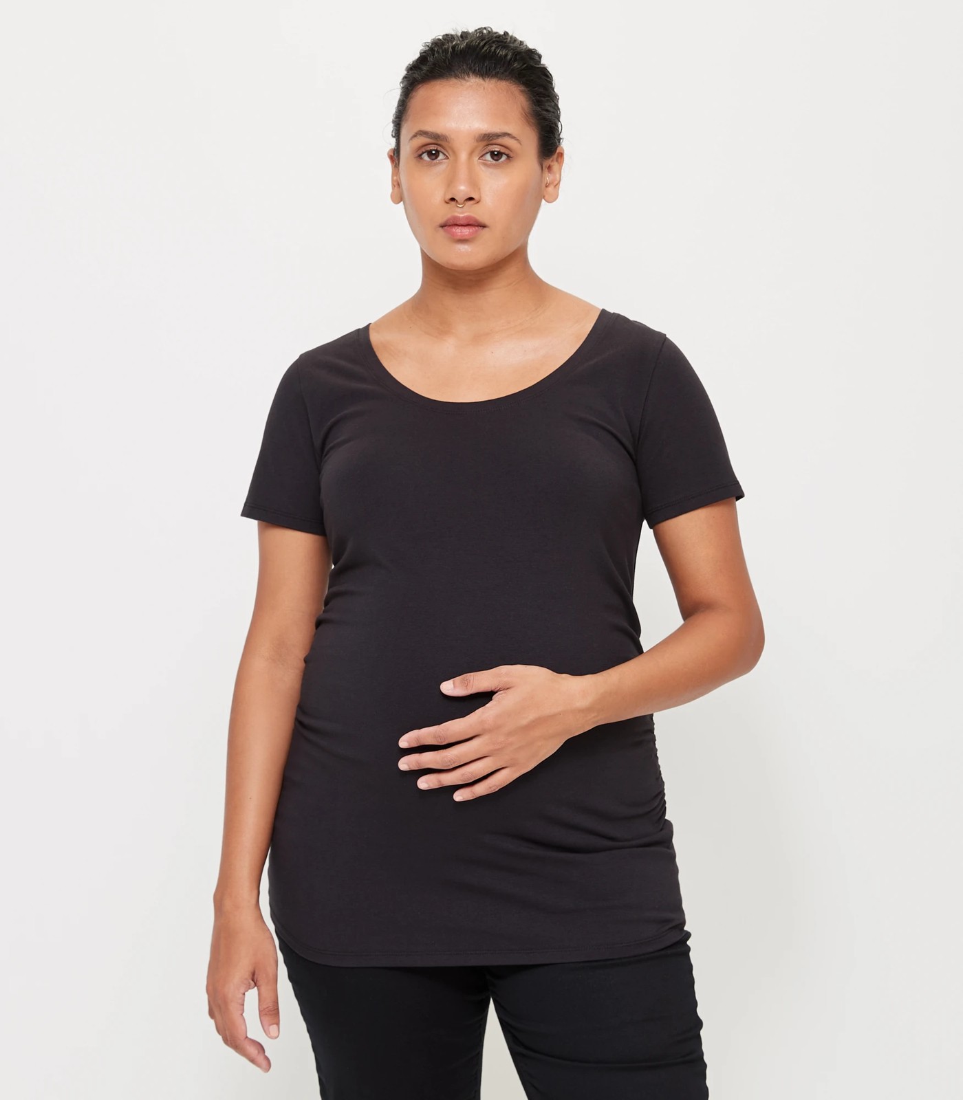 Perfect for everyday wear, the Maternity organic cotton tee matches back to all of your favourite bottoms and allows the freedom and comfort you want as you are growing. It features a breathable organic cotton fabrication, stretch for your growing belly and is perfect for nursing.