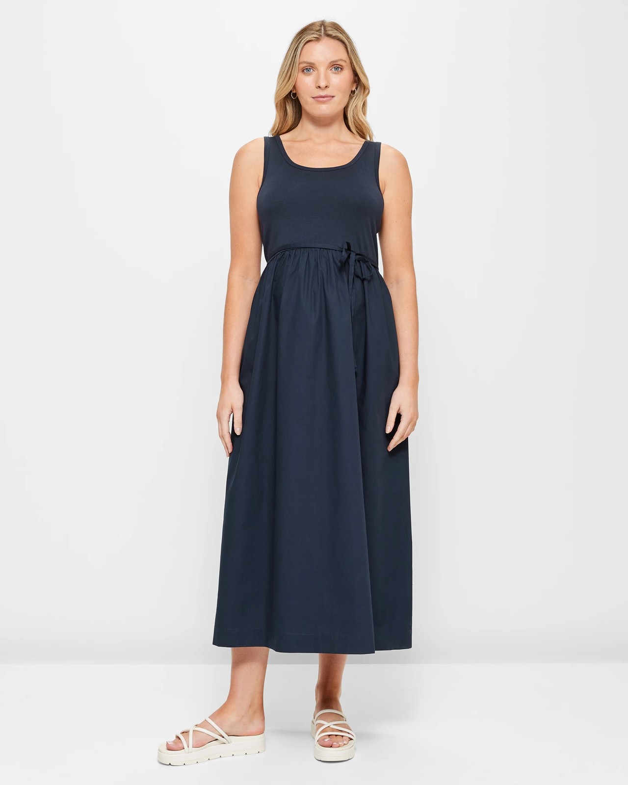 Maternity Poplin Knit Midi Dress