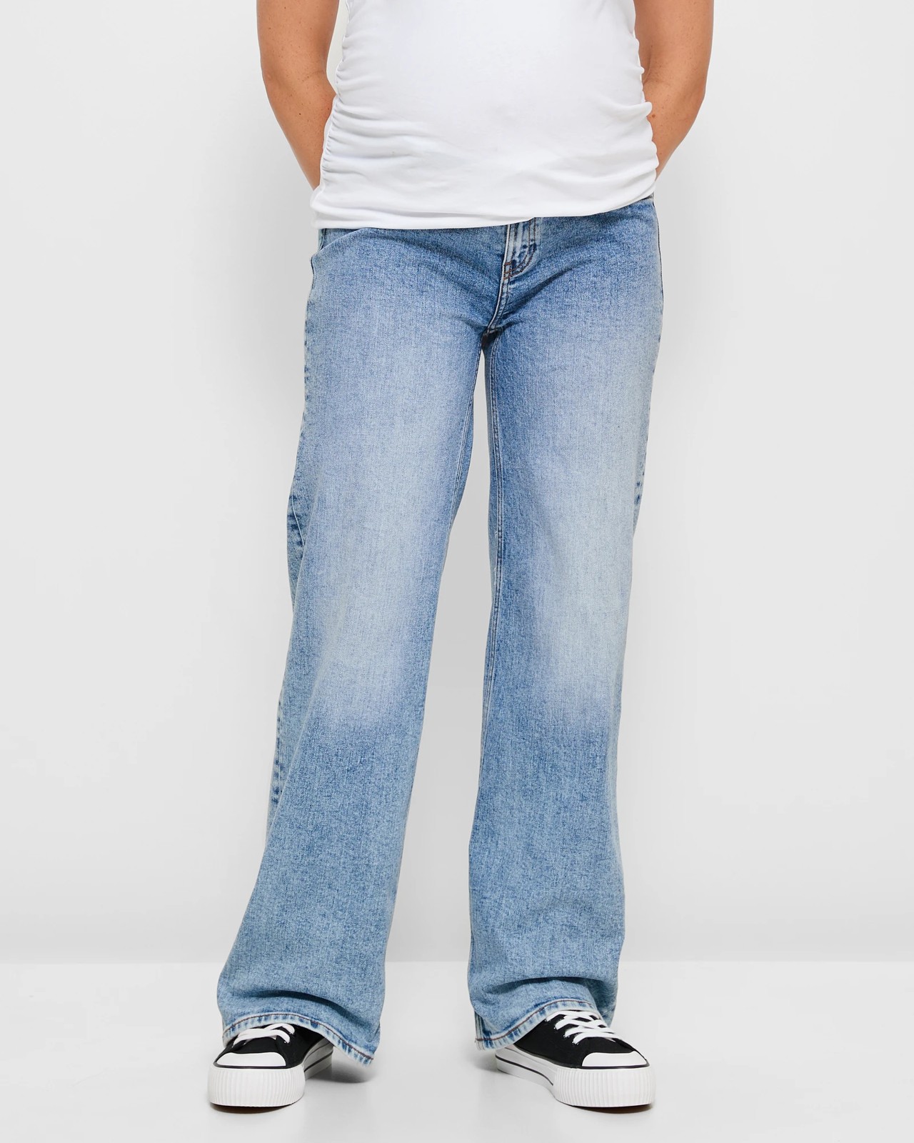 Step into comfort and style during your special journey with our Maternity Wide Leg Denim Jeans. Made from a cotton-rich fabric, these jeans offer the perfect stretch to keep you comfy all day. The faded blue hue and wide-leg cut lend a contemporary touch, ideal for dressing up or down. Designed with a low-rise waist to sit comfortably beneath your bump, and featuring side stretch ribbed panels, these jeans adjust as you grow. Pair them with your favourite top and step out with confidence. Shop now and make them yours!